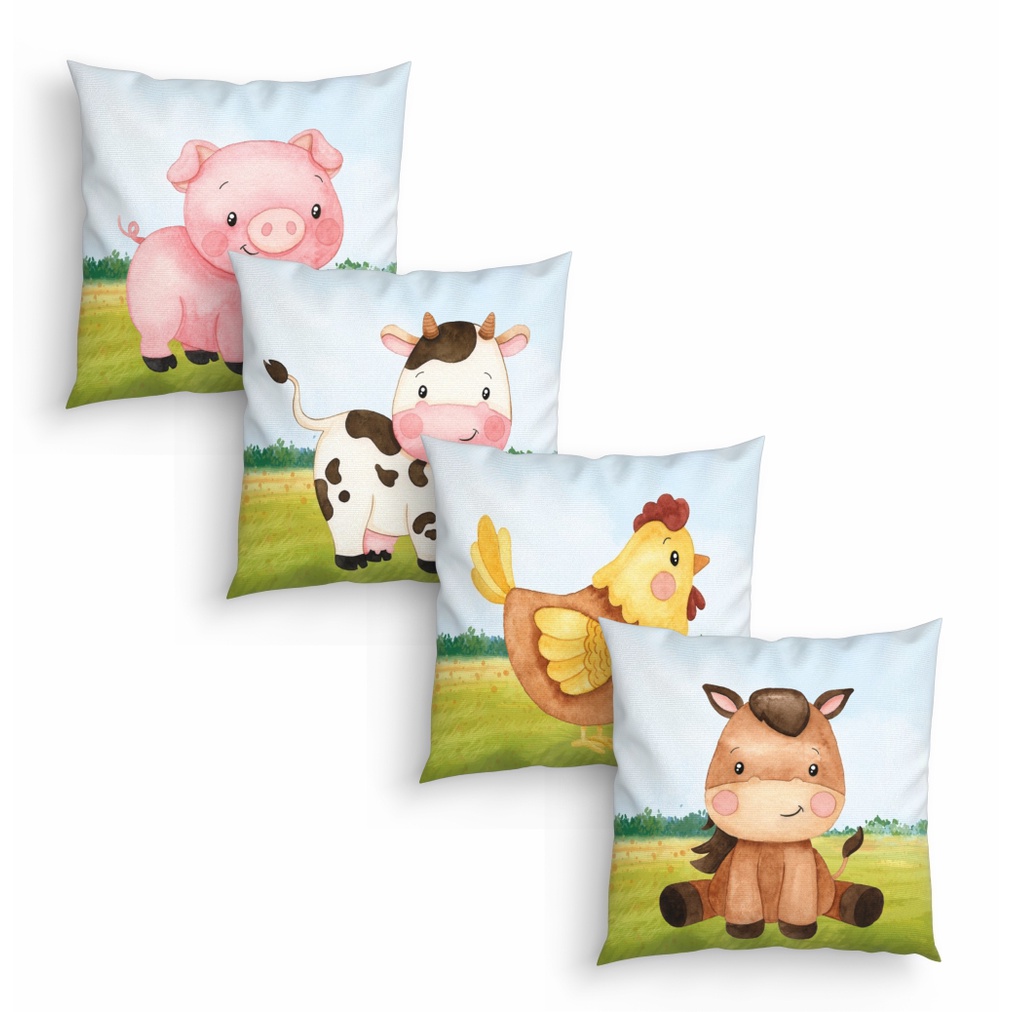 Kit 4 Capas de Almofadas Decorativas 45cm Fazendinha Aquarela
