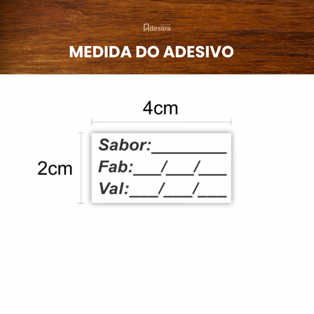 Etiqueta Vinil à Prova d’Água 4x2cm – Rótulo de Identificação Sabor, Fabricação e Validade para Doces e Bolos