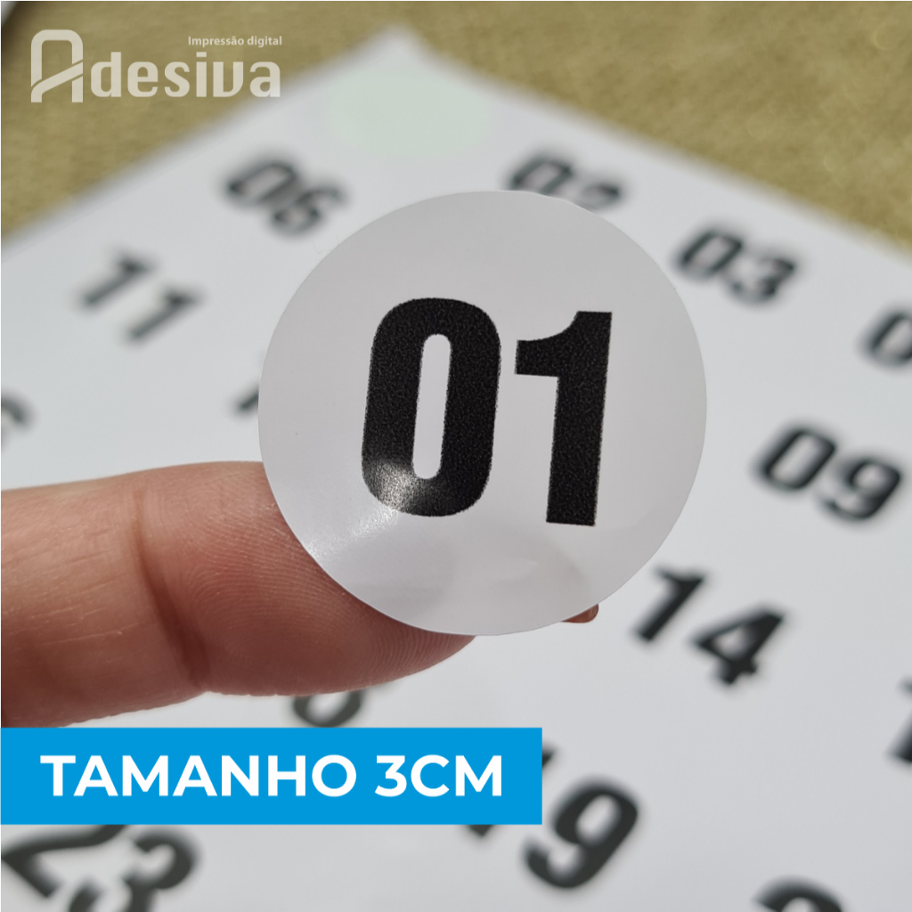 Adesivo Bolinha Numerada 01 a 200 ou 1 a 600 Vinil Branco Brilho Autoadesivo Organização