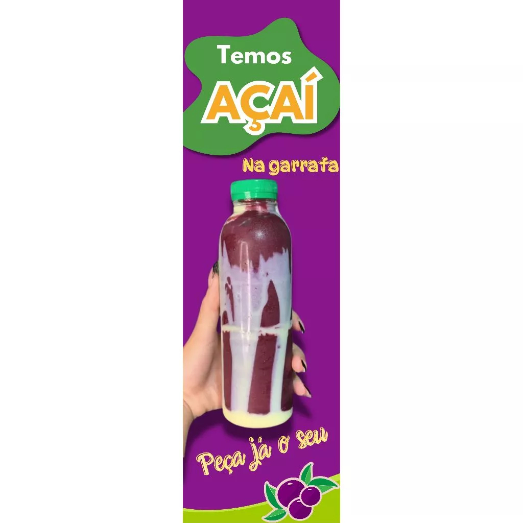 Banner Faixa I Açaí na Garrafa I Lanchonetes Açaiterias I 30x100cm