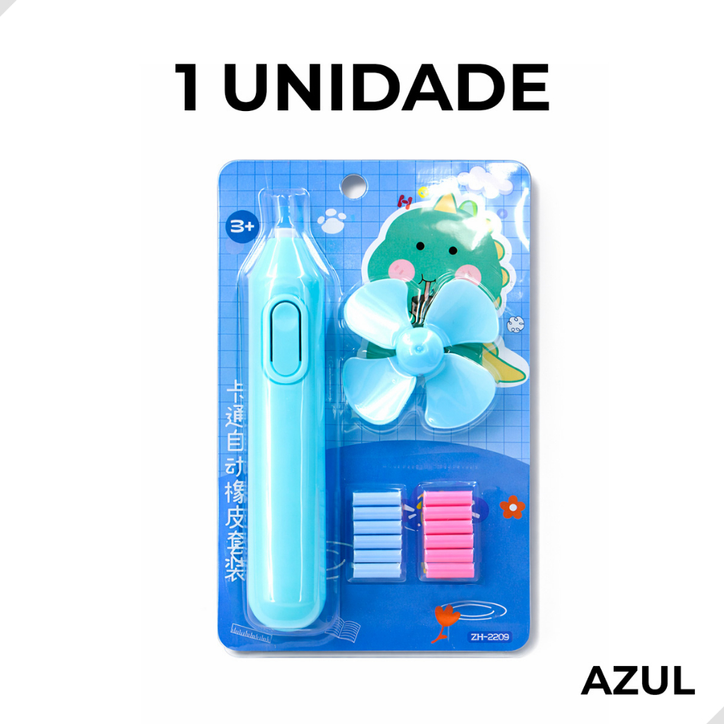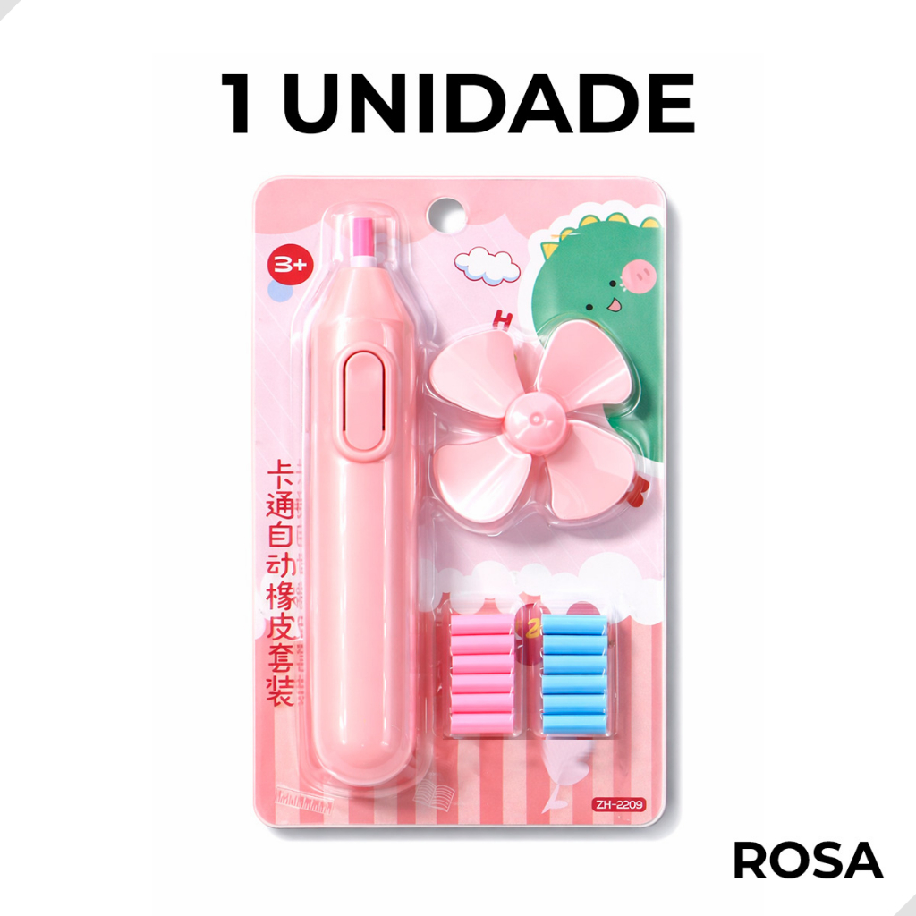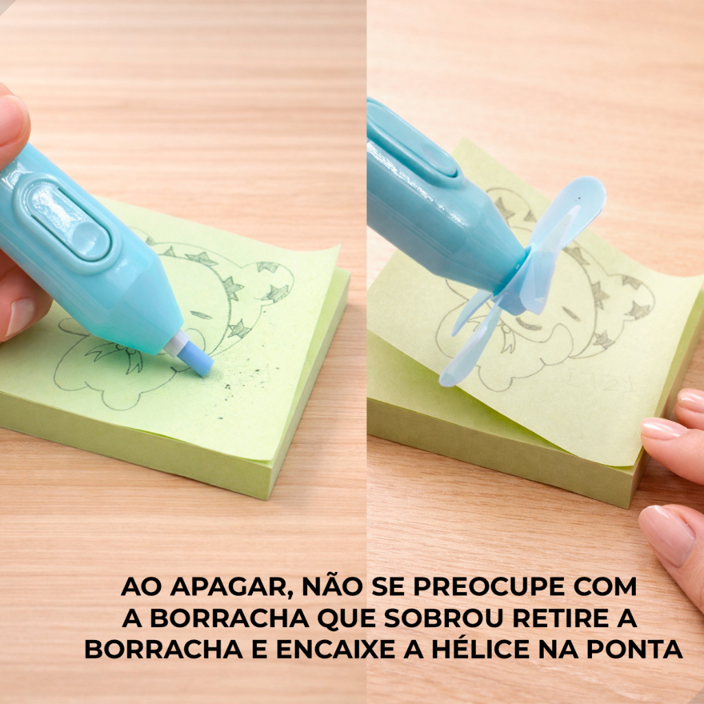 Kit Borracha Elétrica com Mini Ventiladorzinho e 12 Refil Colorido Escolar NÃO ACOMPANHA PILHA