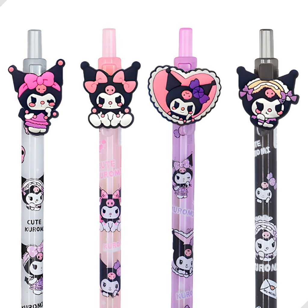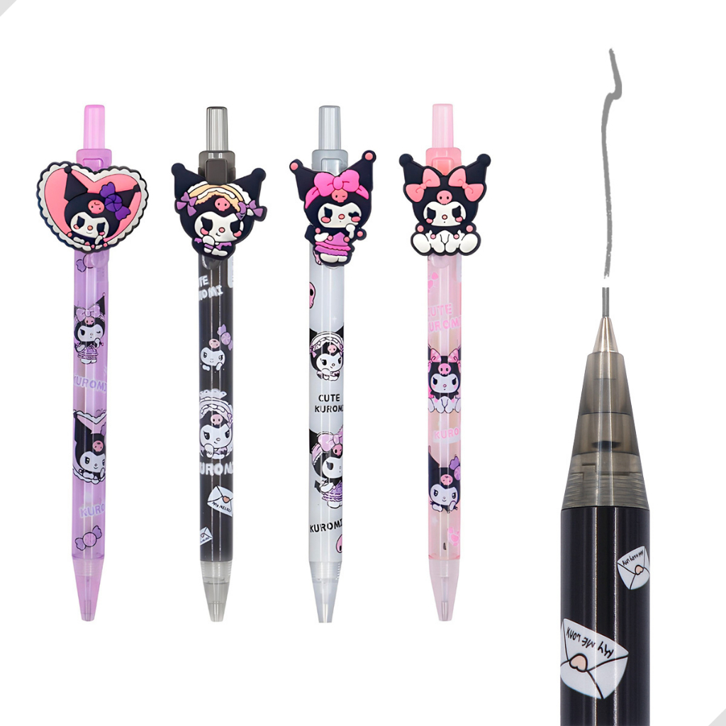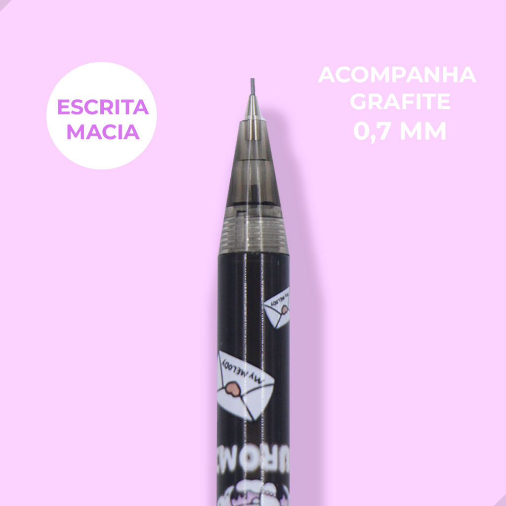 Kit 4 Lapiseira Kuromi Ponta Fina 0.7 com Aplique Emborrachado Escolar