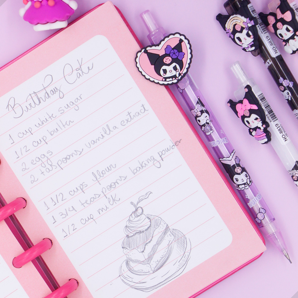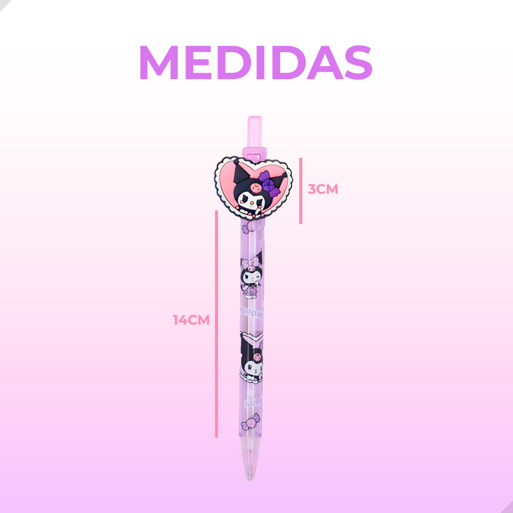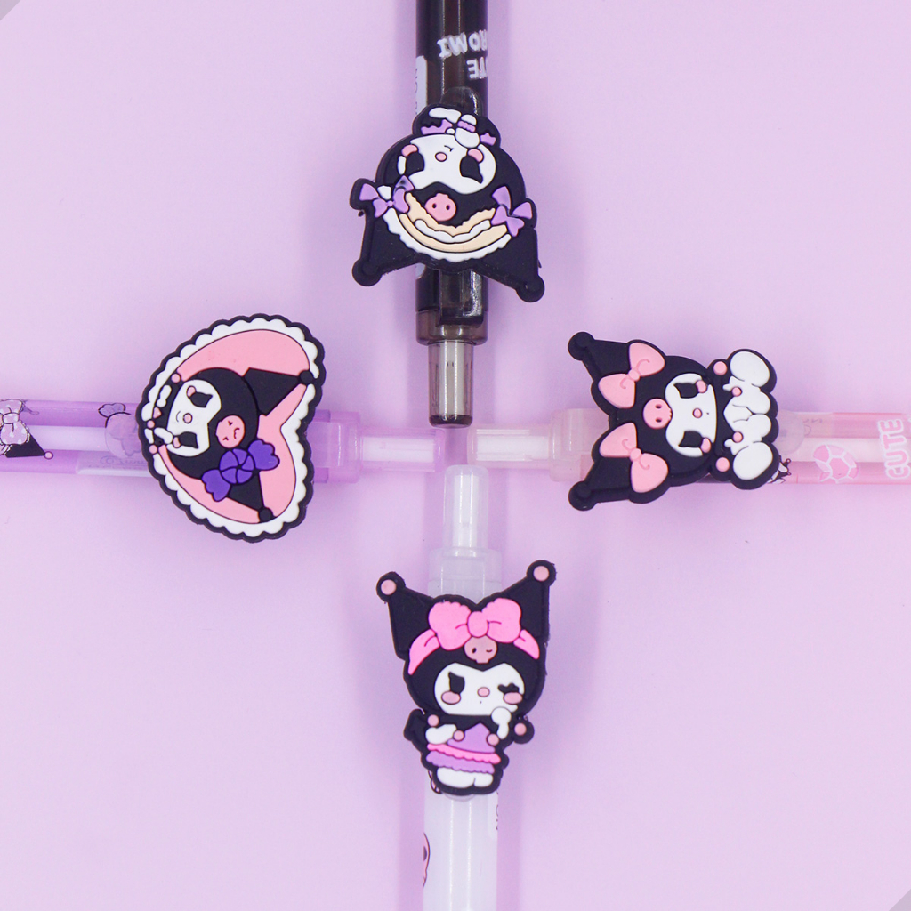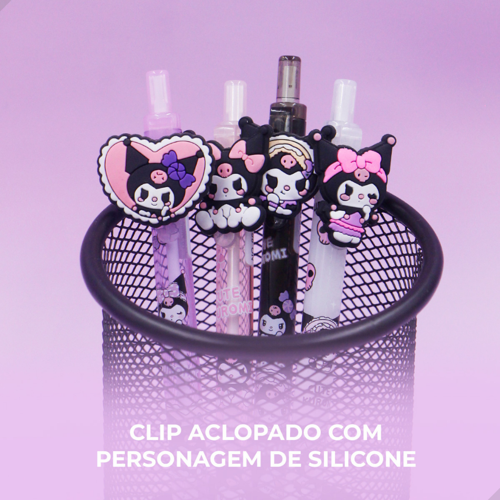 Kit 4 Lapiseira Kuromi Ponta Fina 0.7 com Aplique Emborrachado Escolar