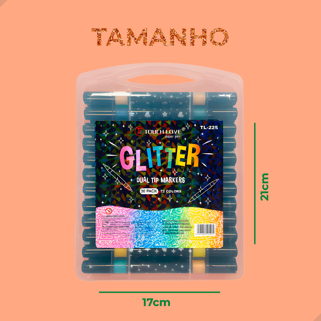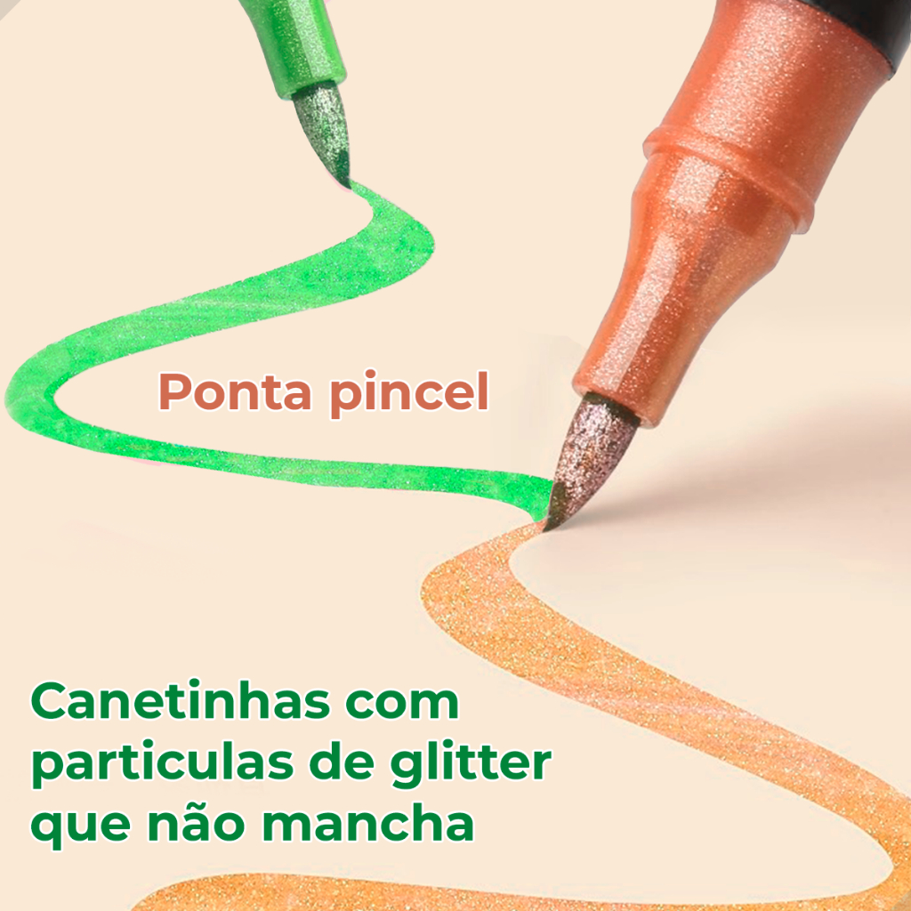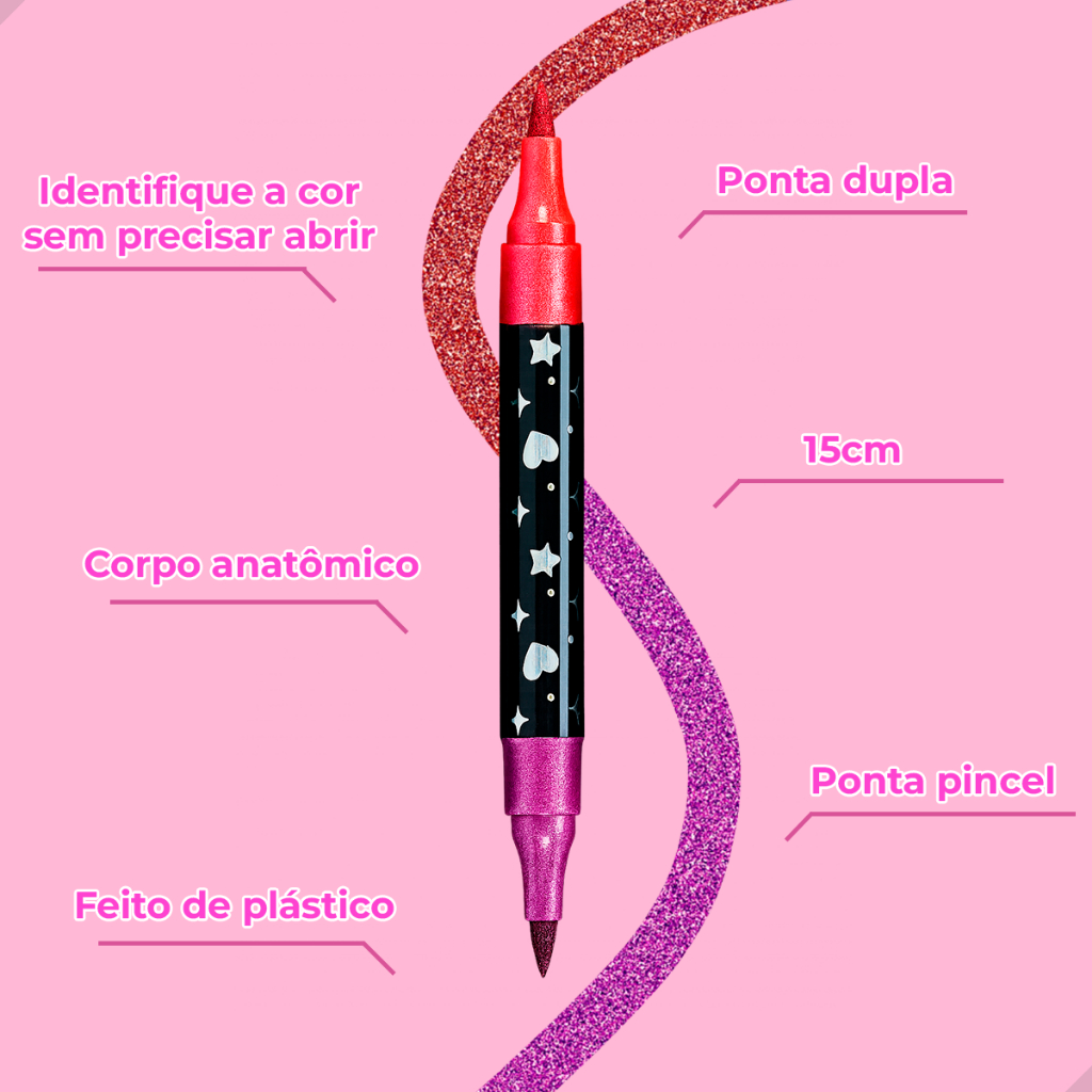 Conjunto de Canetinhas com Glitter Ponta Dulpa Brush Pen Touch Love Kit com Várias Cores 2 em 1