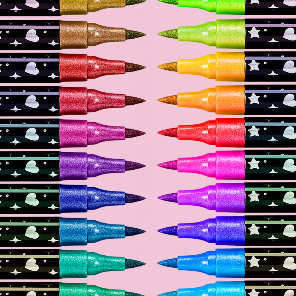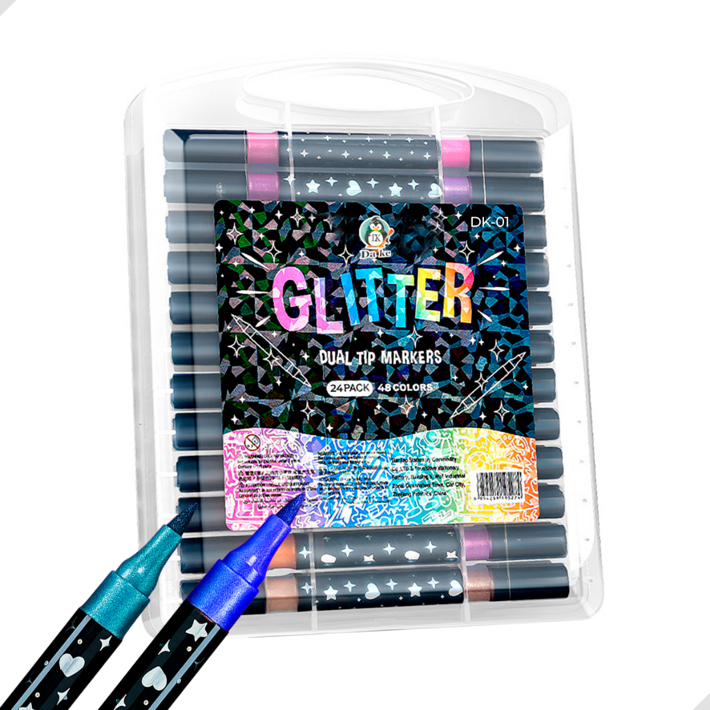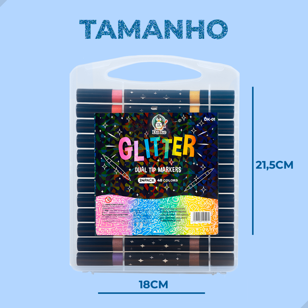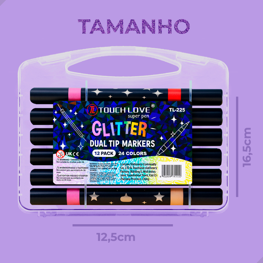 Conjunto de Canetinhas com Glitter Ponta Dulpa Brush Pen Touch Love Kit com Várias Cores 2 em 1
