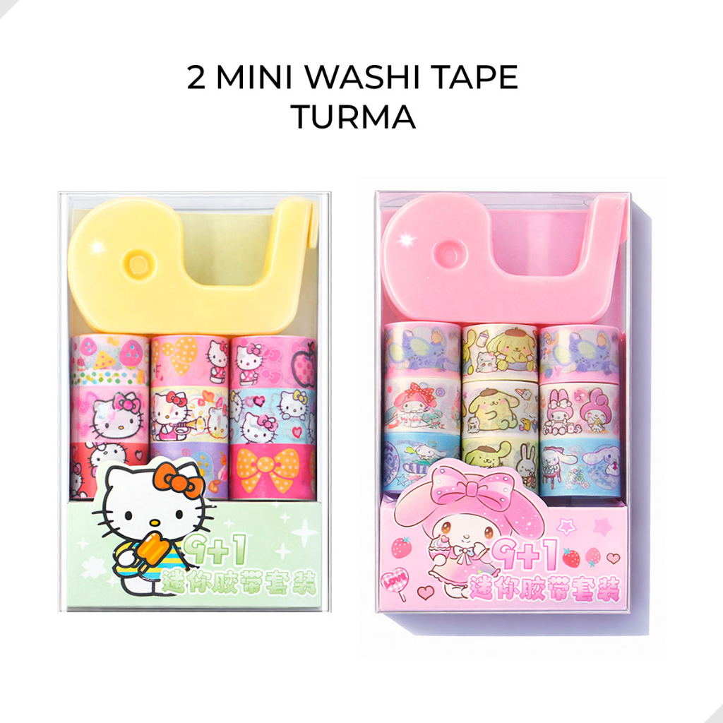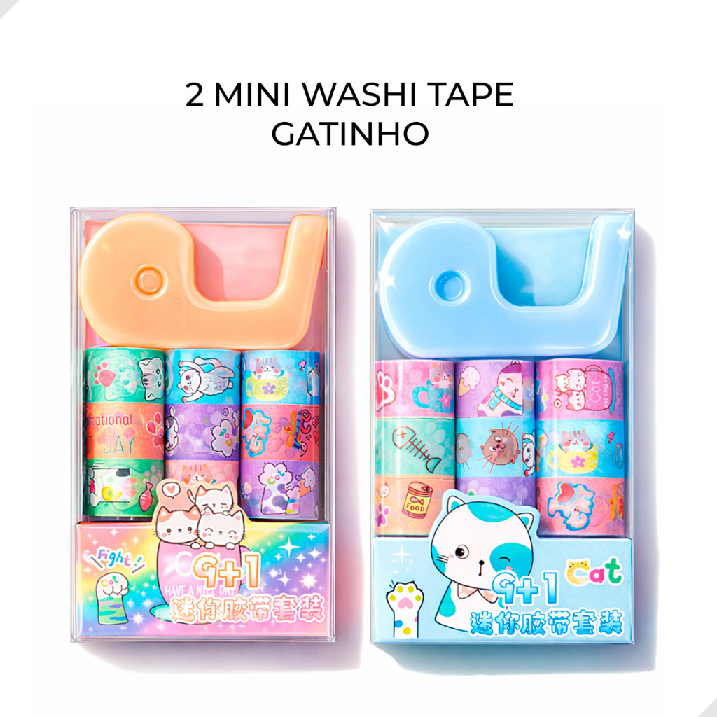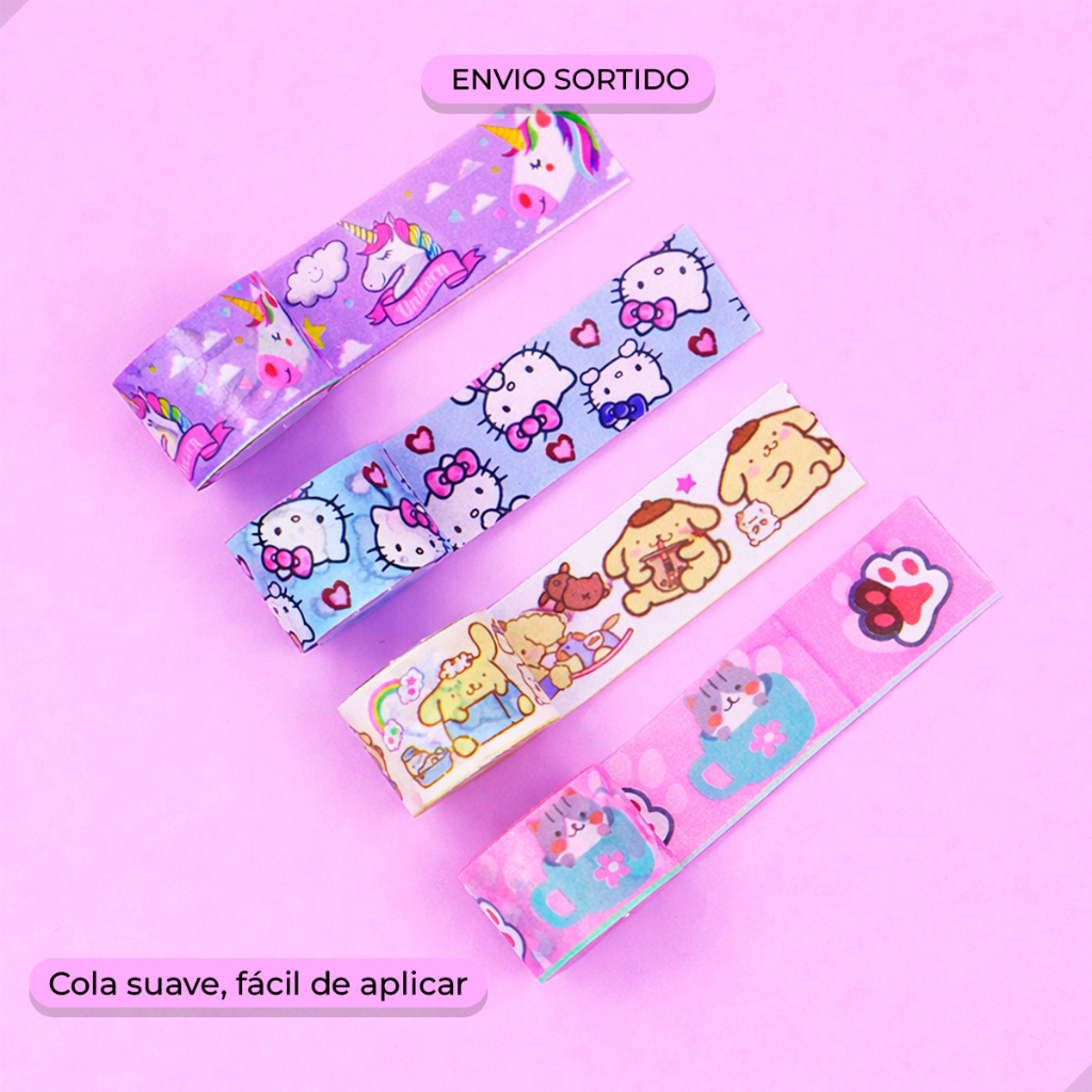 Kit Com 2 Mini WashTape Fita Adesiva Com Dispenser Cortador Cores Sortidas Turma Hello Kitty
