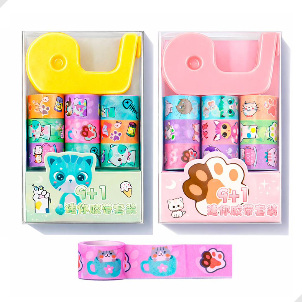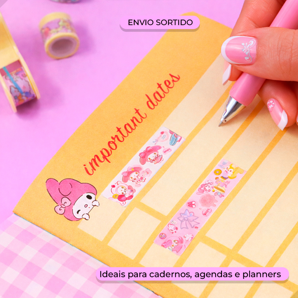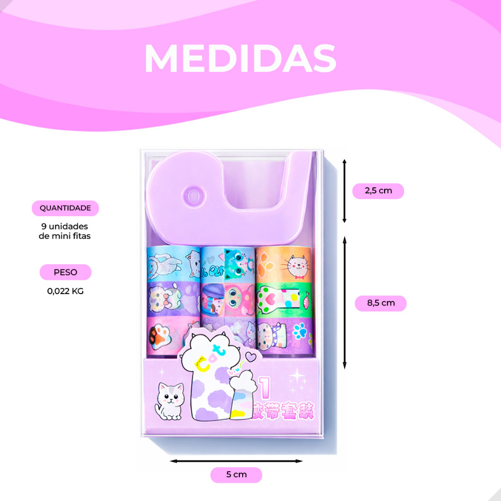 Kit Com 2 Mini WashTape Fita Adesiva Com Dispenser Cortador Cores Sortidas Turma Hello Kitty