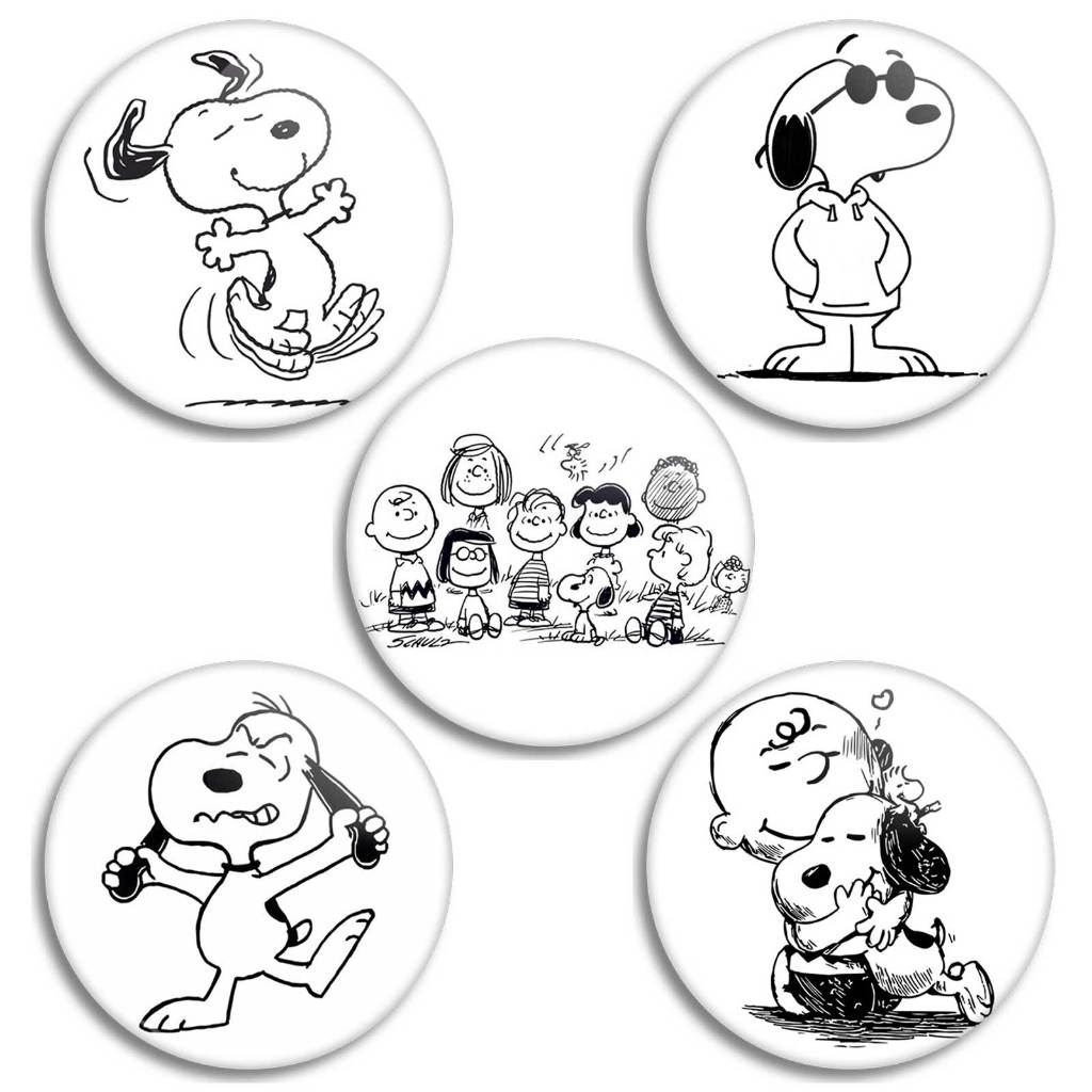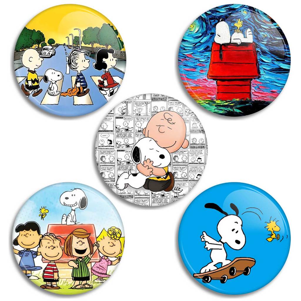 Kit 5 Botons Snoopy E Charlie Brown, Broche Snoopy personagens