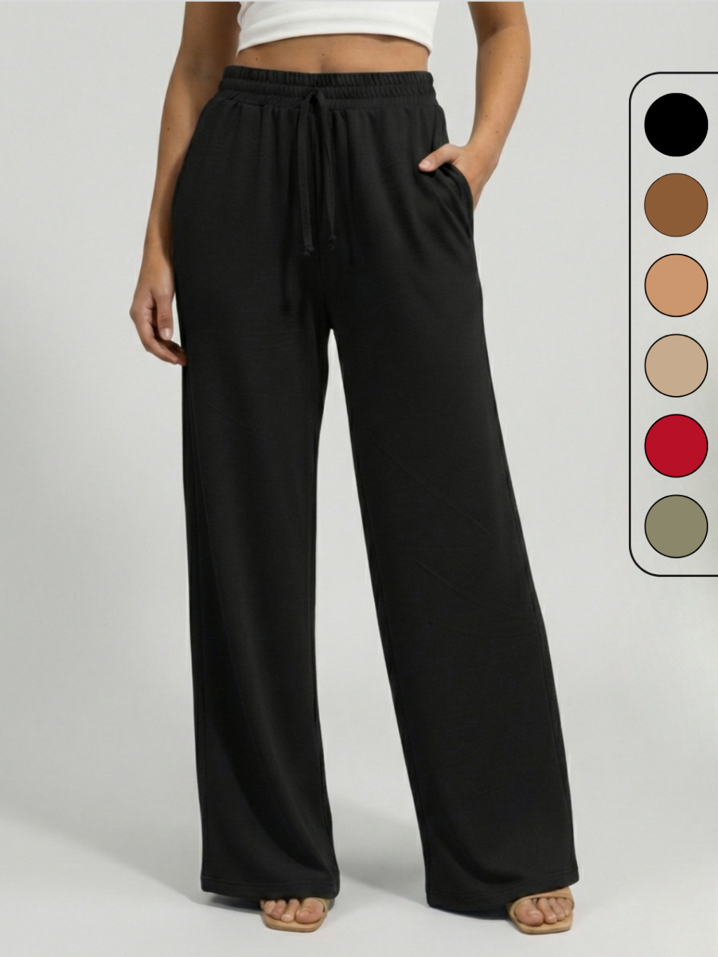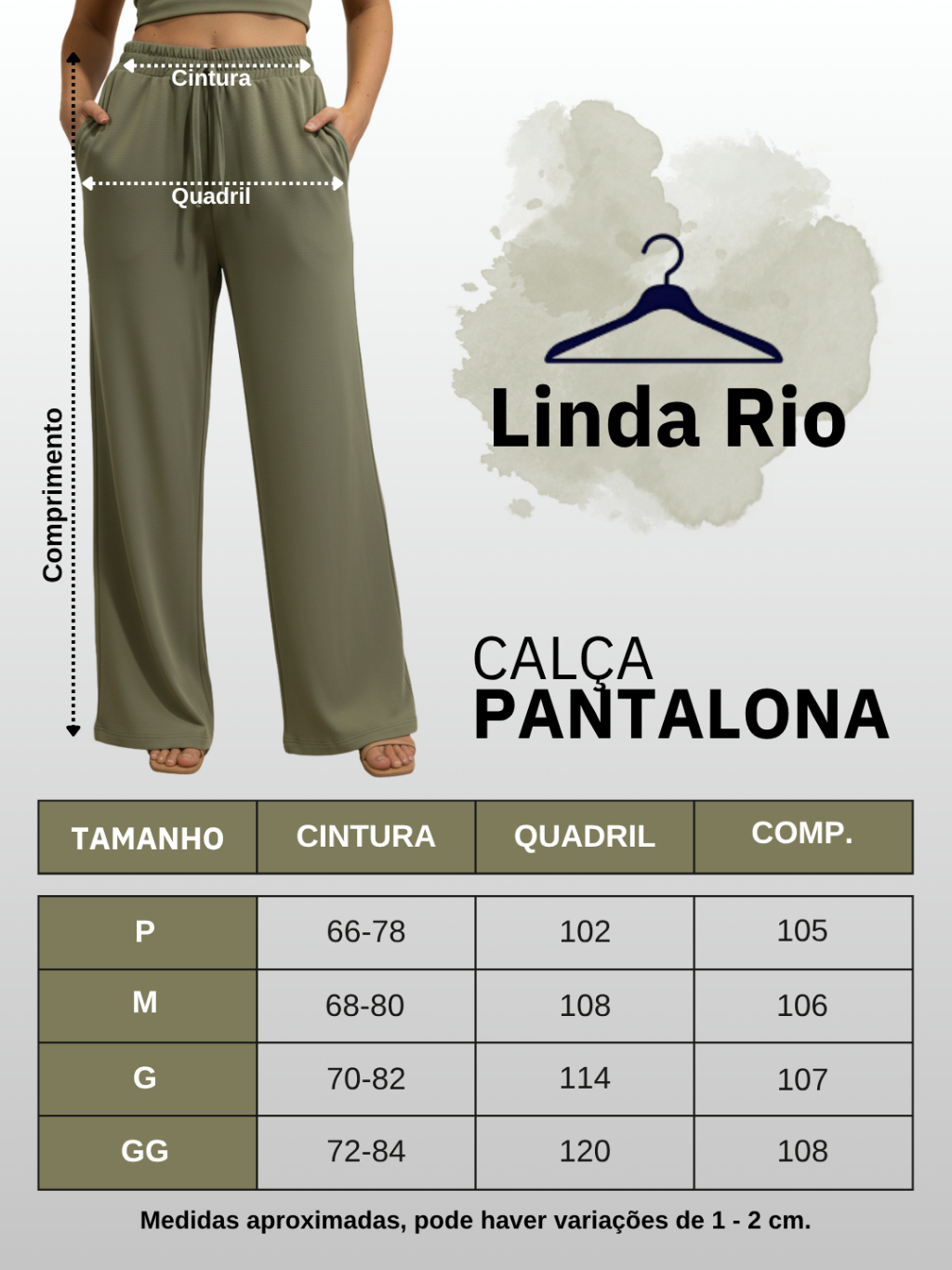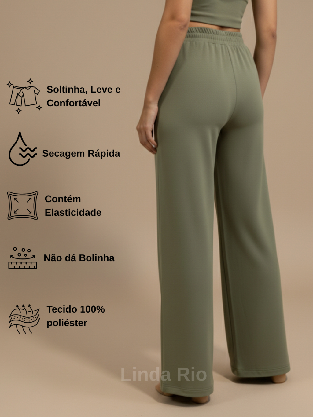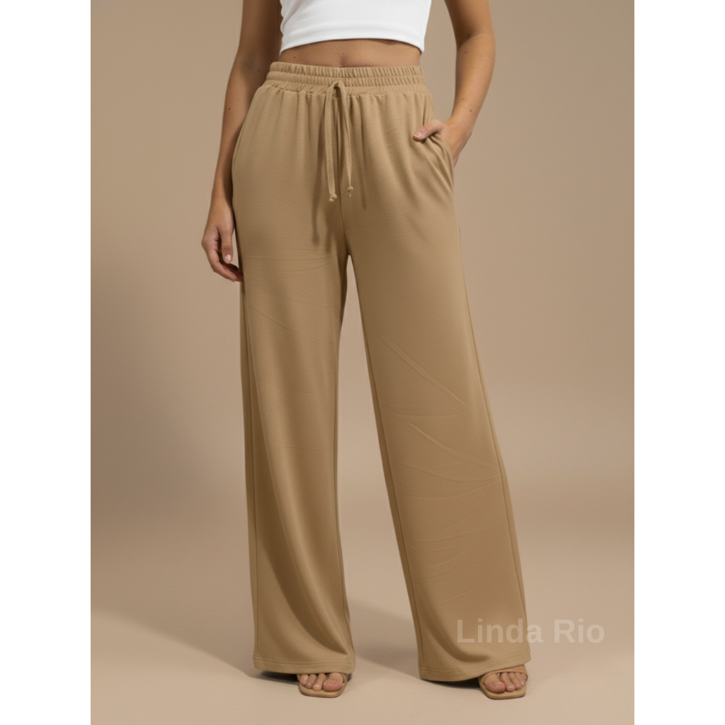 Calça Pantalona Feminina Com Bolso Cintura Alta Tecido Duna Verão