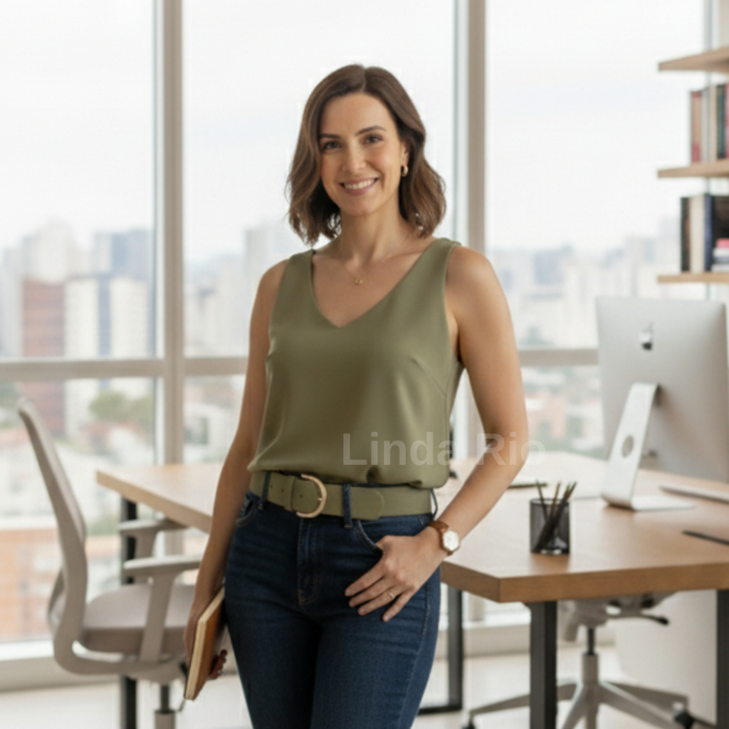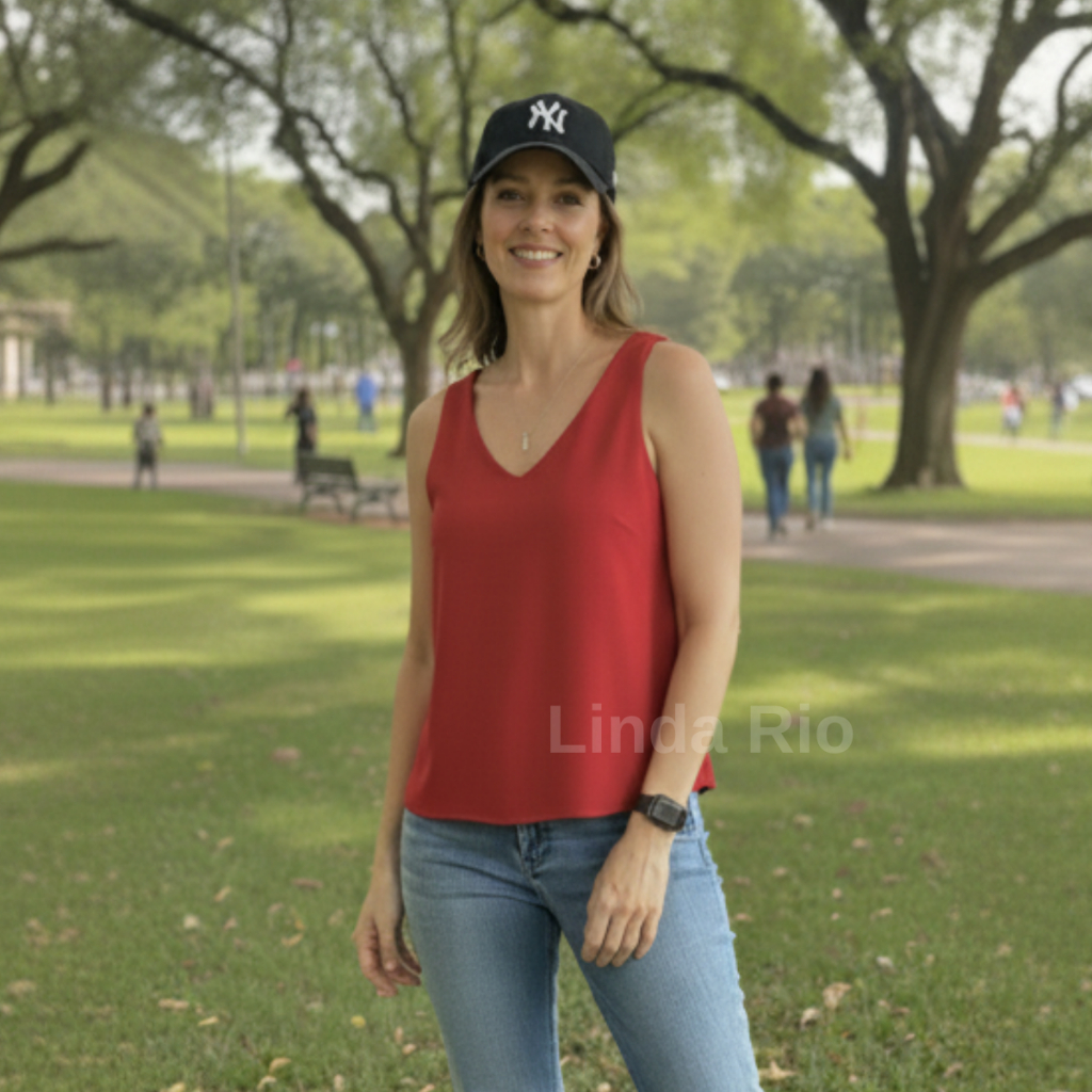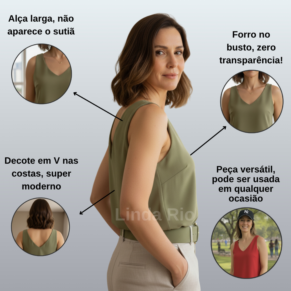 Blusa Regata Feminina Alça Larga Soltinha Elegante Decote V Tecido Duna