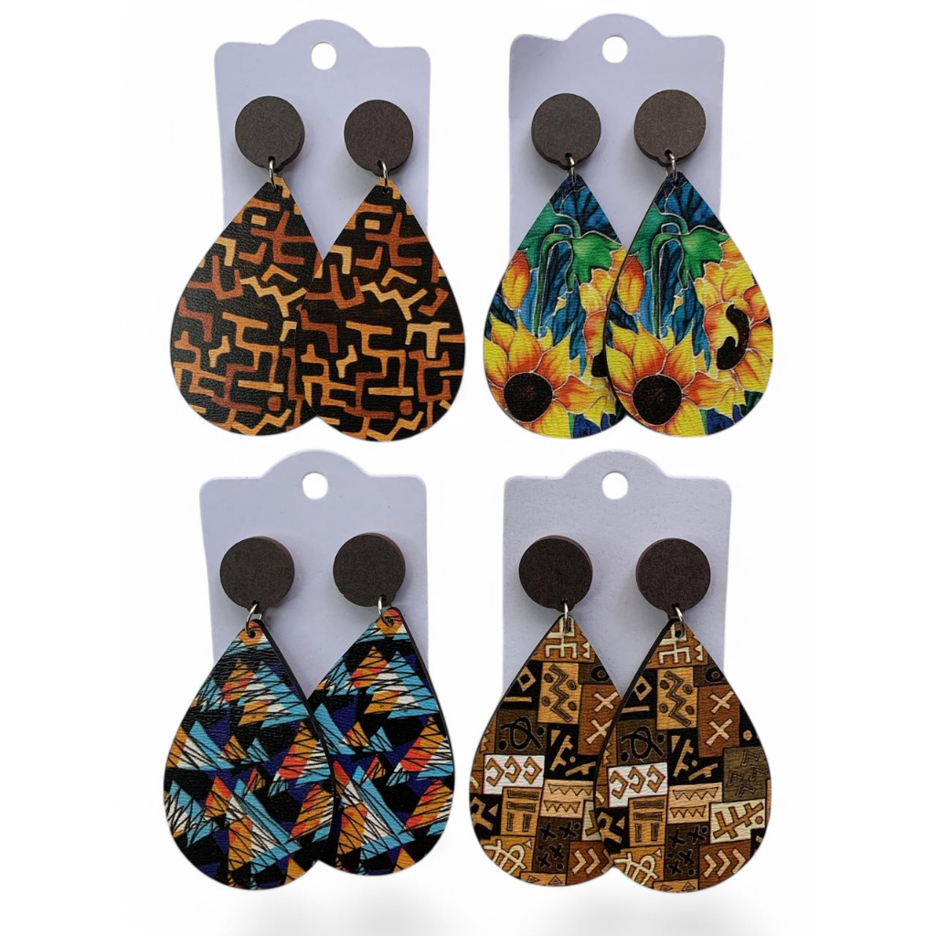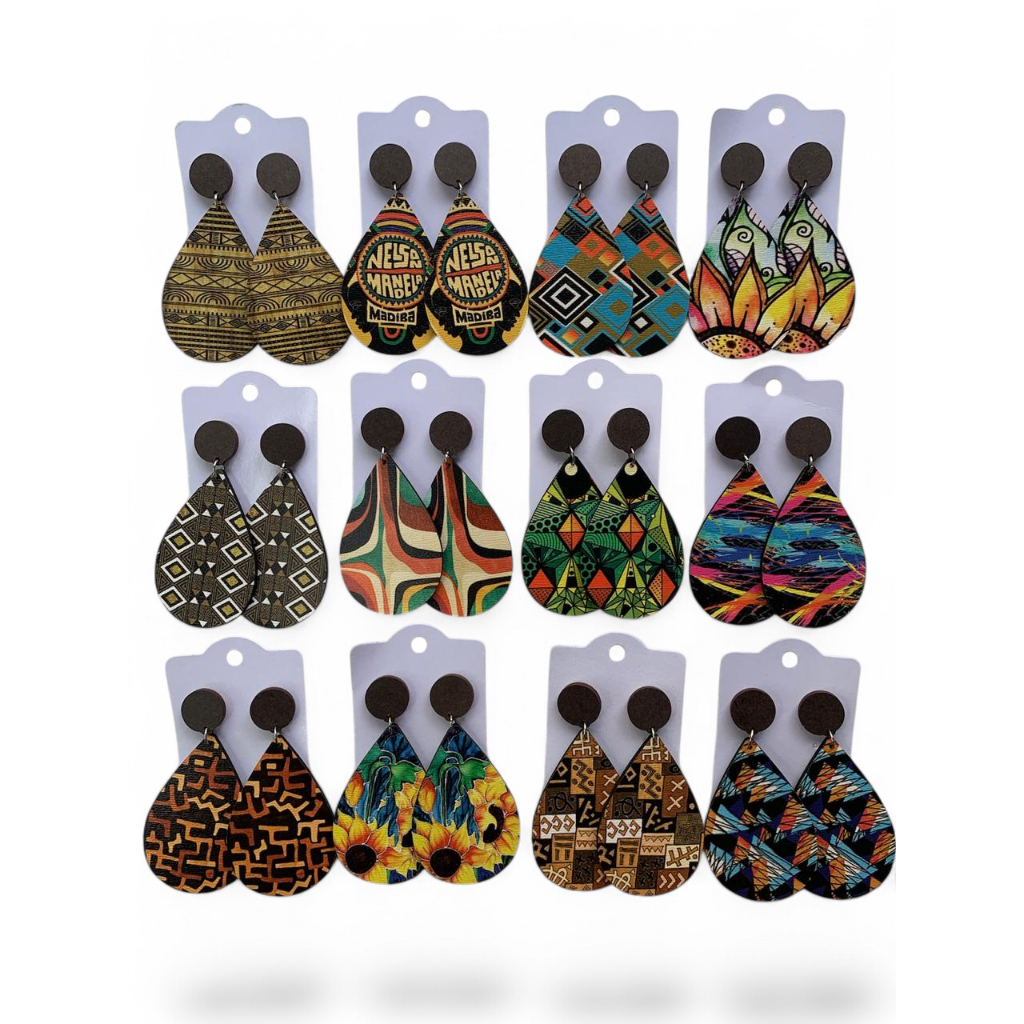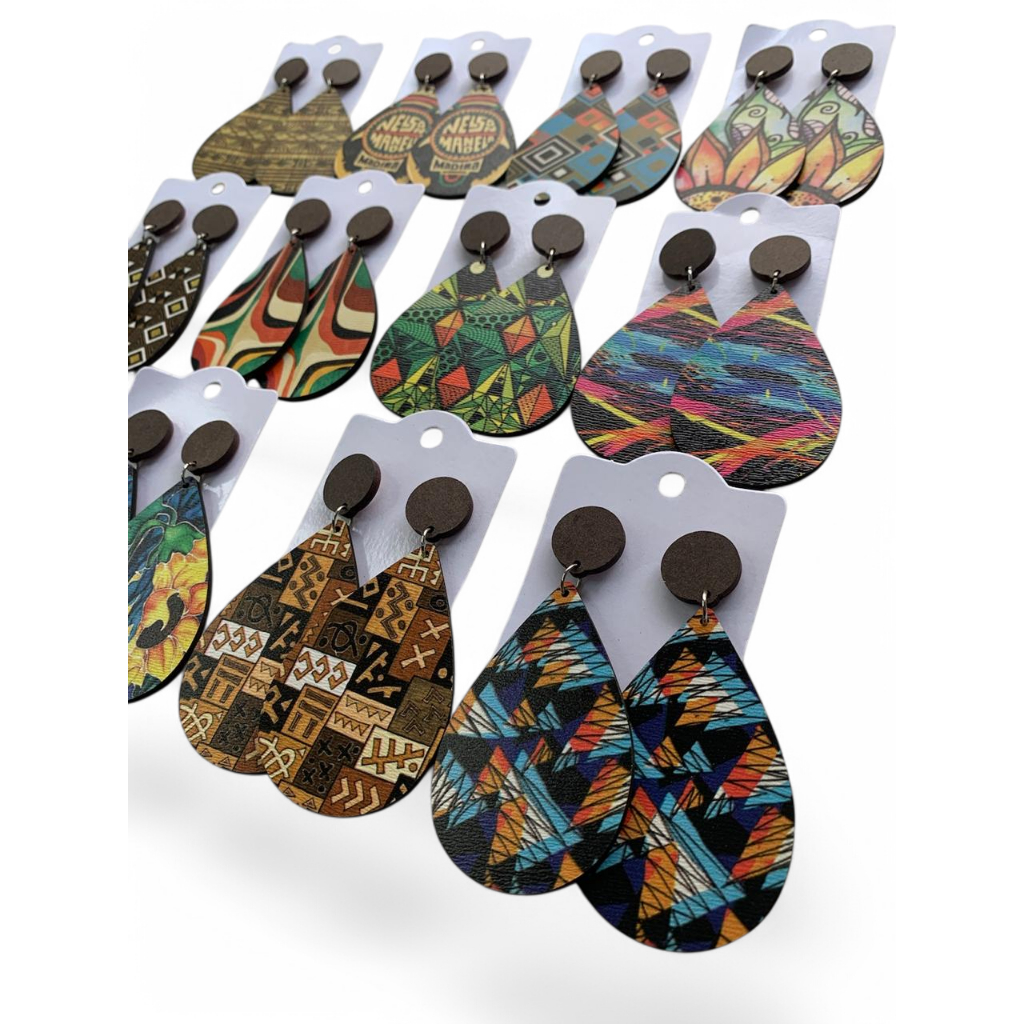 Brinco Afro Estampado Étnico MDF Kit 12 Pares Exclusivos