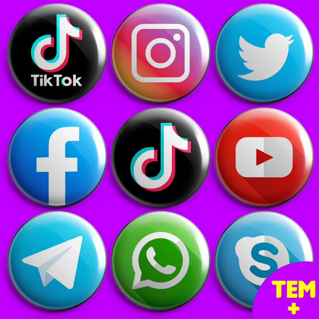 Bottons REDES SOCIAIS e mais - Botton de 3,5cm/4,5cm/5,5cm