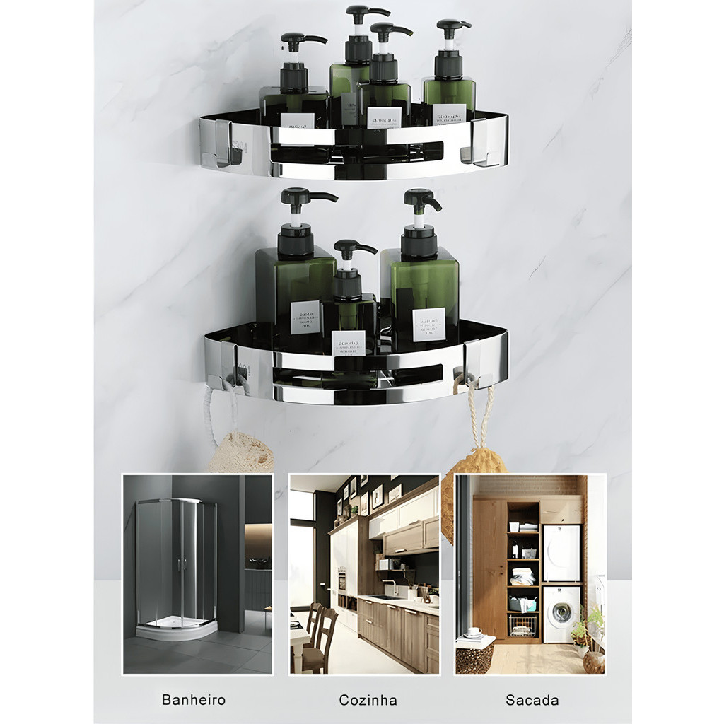 Kit 2 Suporte Porta Shampoo E Sabonete Para Banheiro De Canto Inox - WBCOM