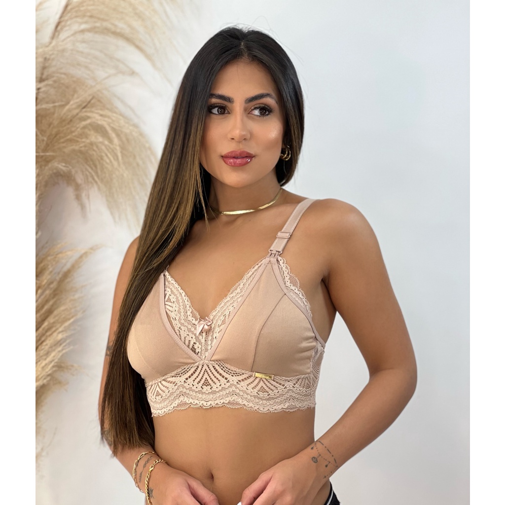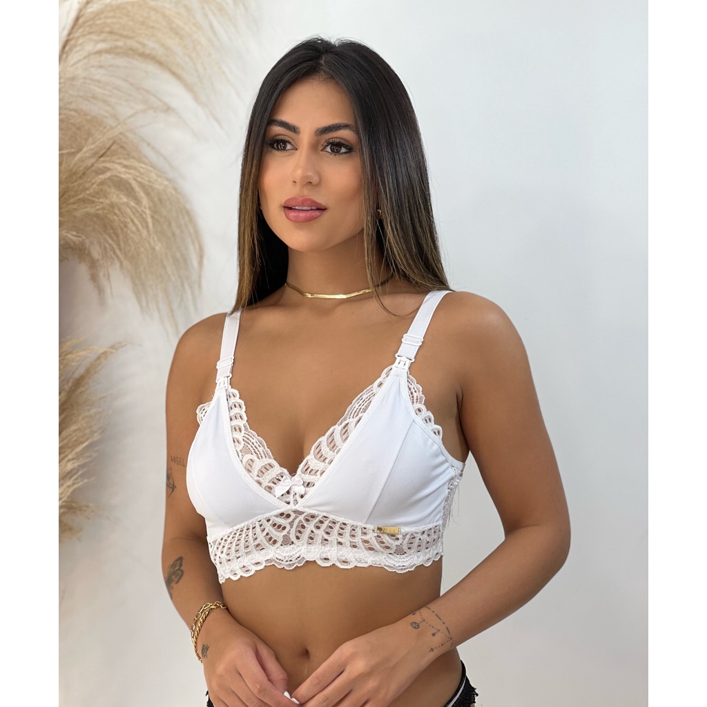 Sutiã Renda Glamour Amamentação Elástico Amamentar Gestante Click Abertura