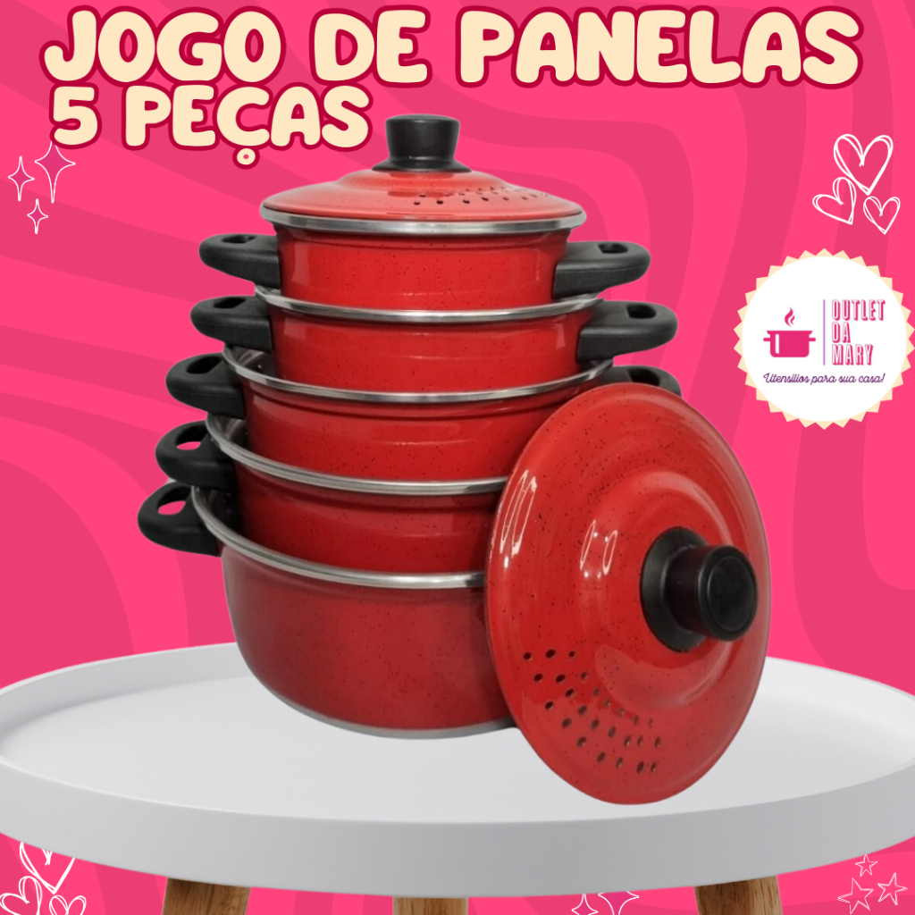 Jogo de Panelas Alumínio Vermelho 5 Peças