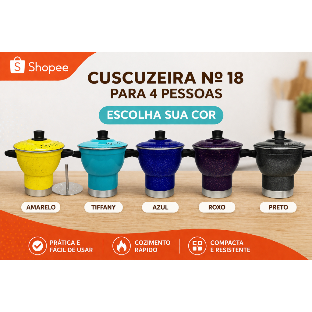 Cuscuzeira de Alumínio N 18 Colorido Cuzcuizeiro para 4 Pessoas Aluminio Amj.