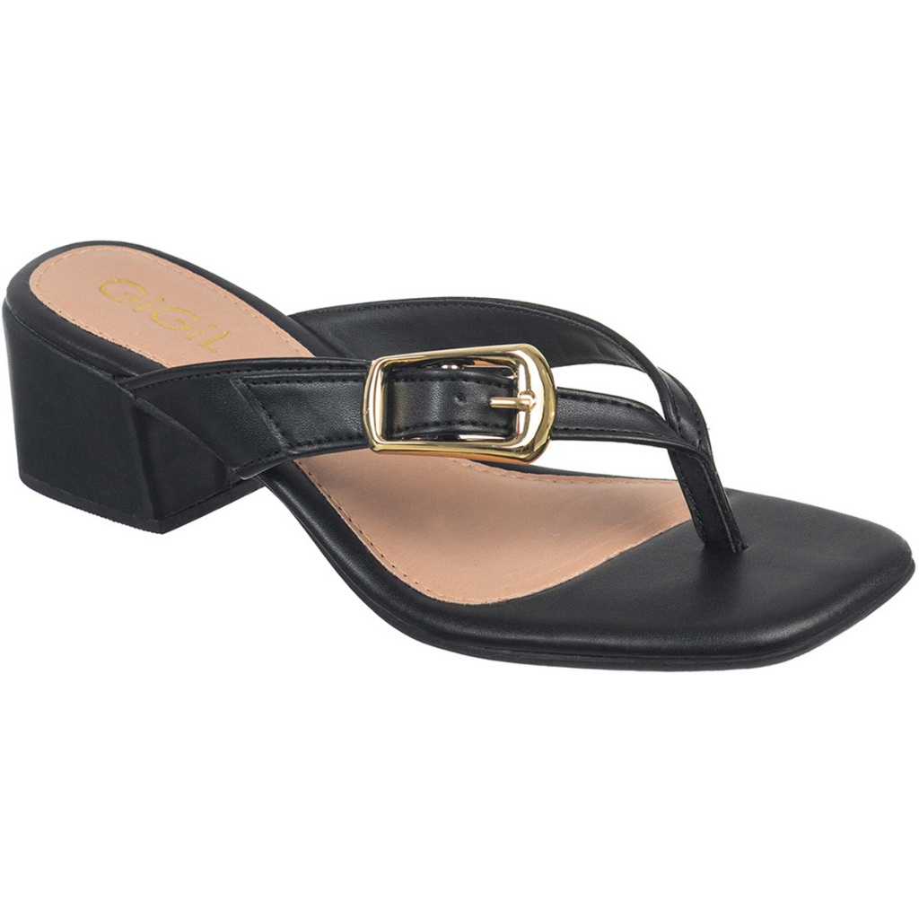 Sandalia Tamanco Feminino Mule De Dedo Enfeite Fivela Metal Salto Bloco Baixo Casual Elegante GiGiL