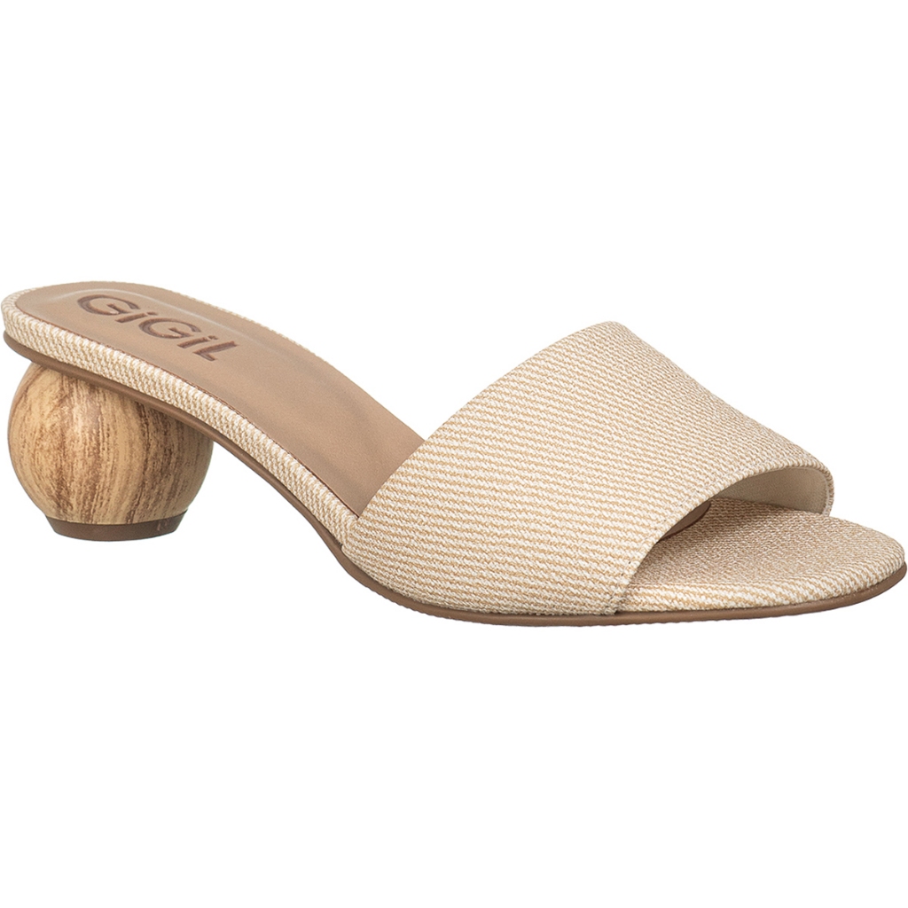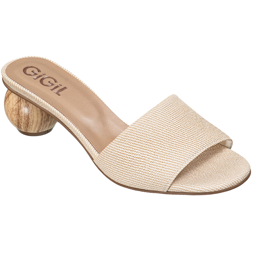 Sandália Tamanco Feminino Salto Redondo Madeira Tira Larga Texturizada Palha Casual GiGiL