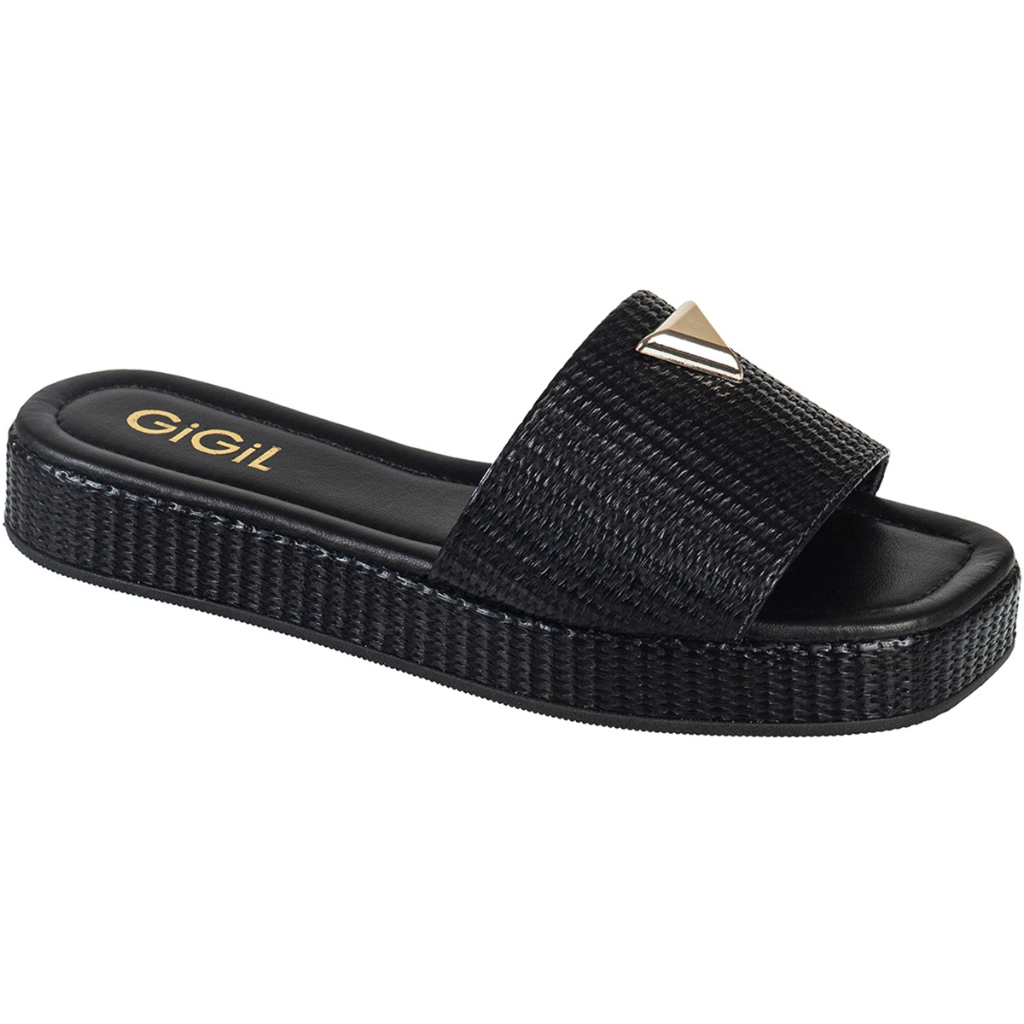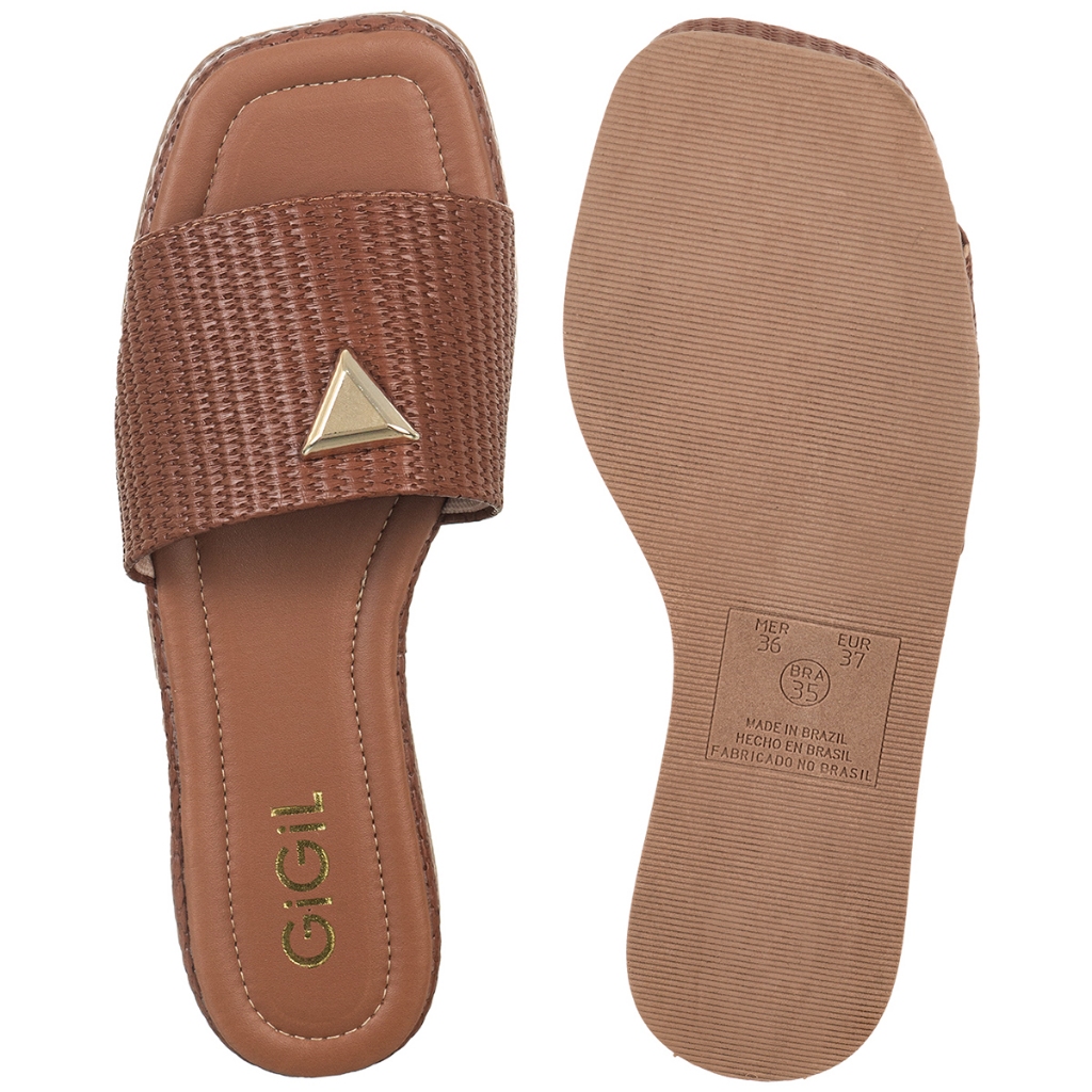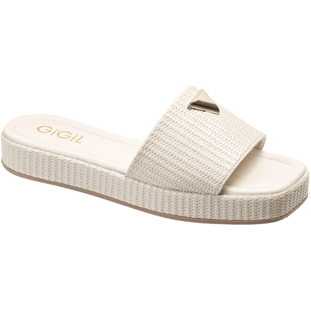 Tamanco Feminino Flatform Baixo Detalhe Triangulo Metalizado Papete Juta Tressê GiGiL