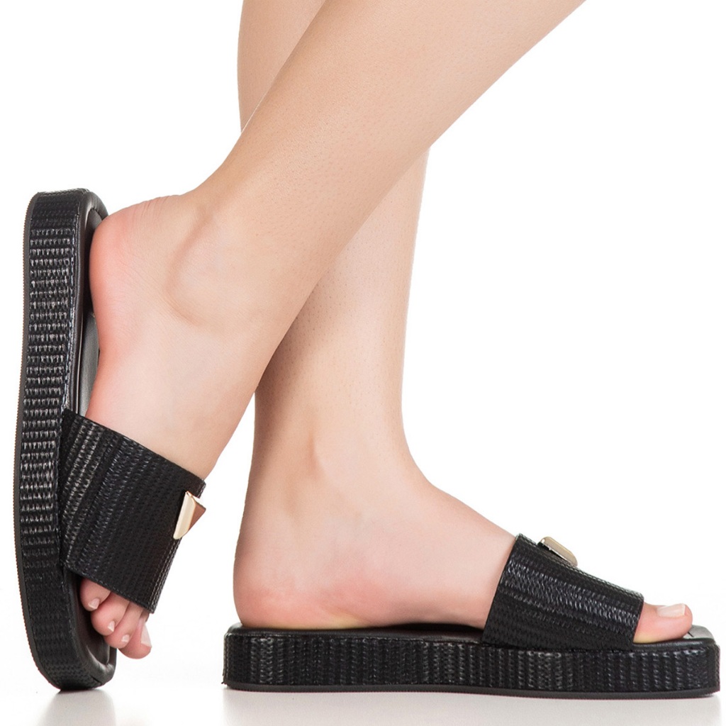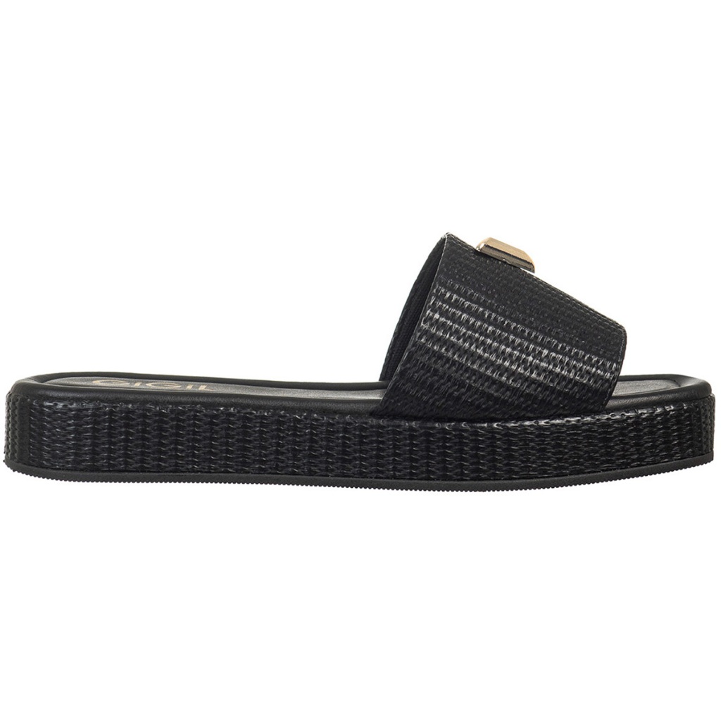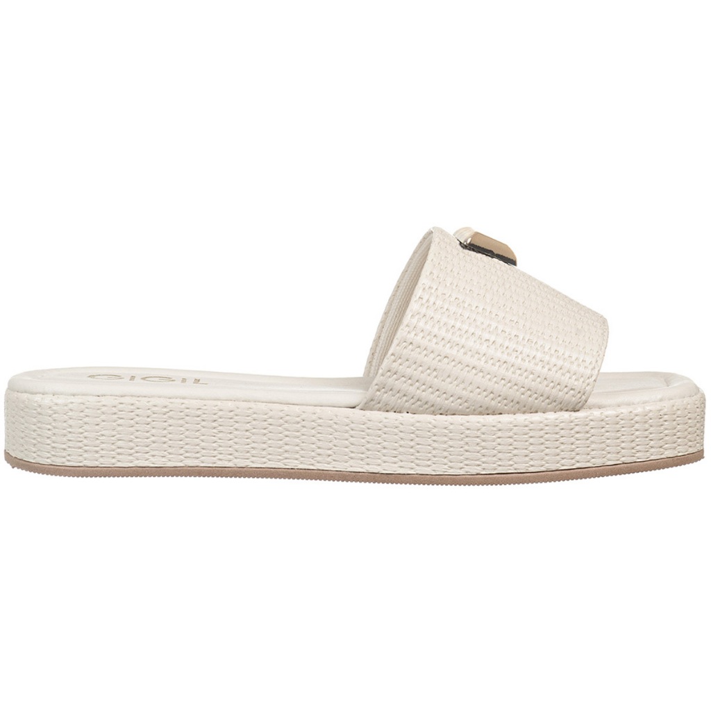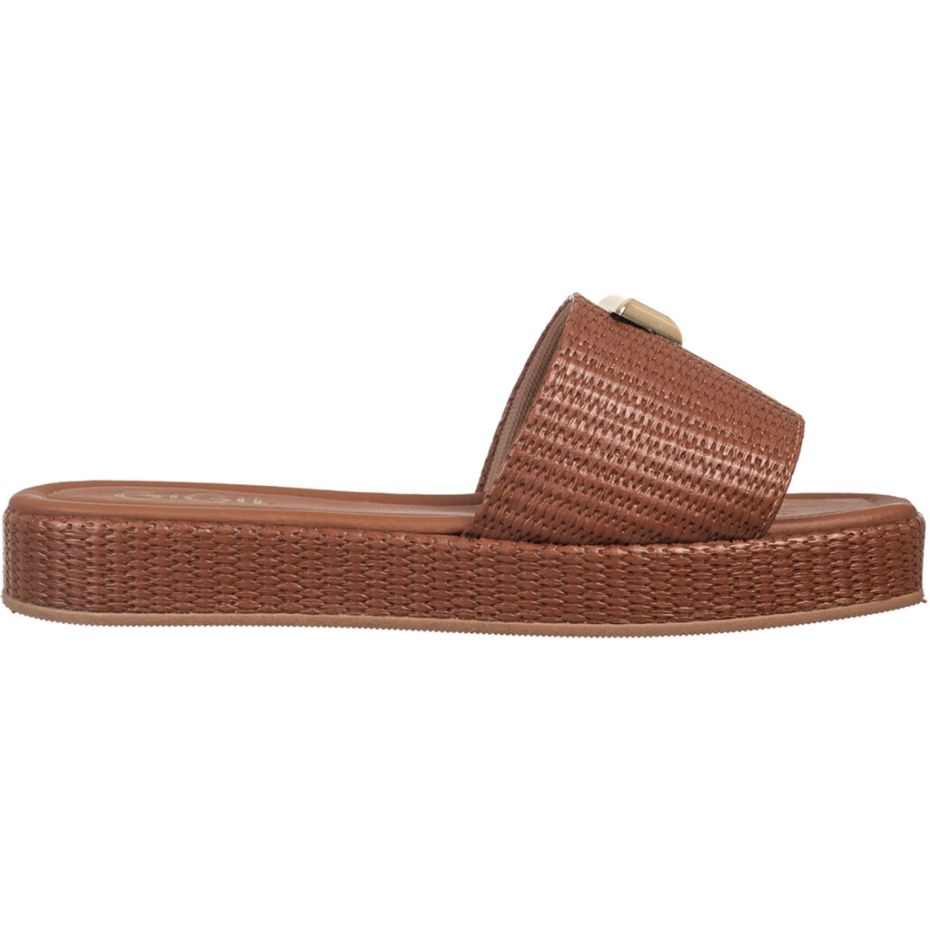 Tamanco Feminino Flatform Baixo Detalhe Triangulo Metalizado Papete Juta Tressê GiGiL