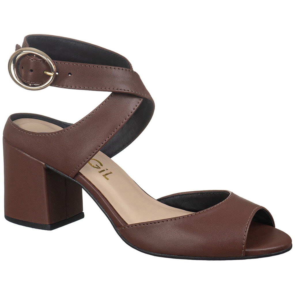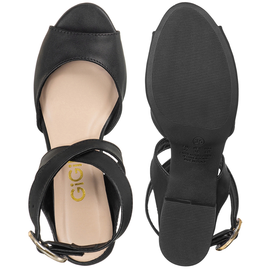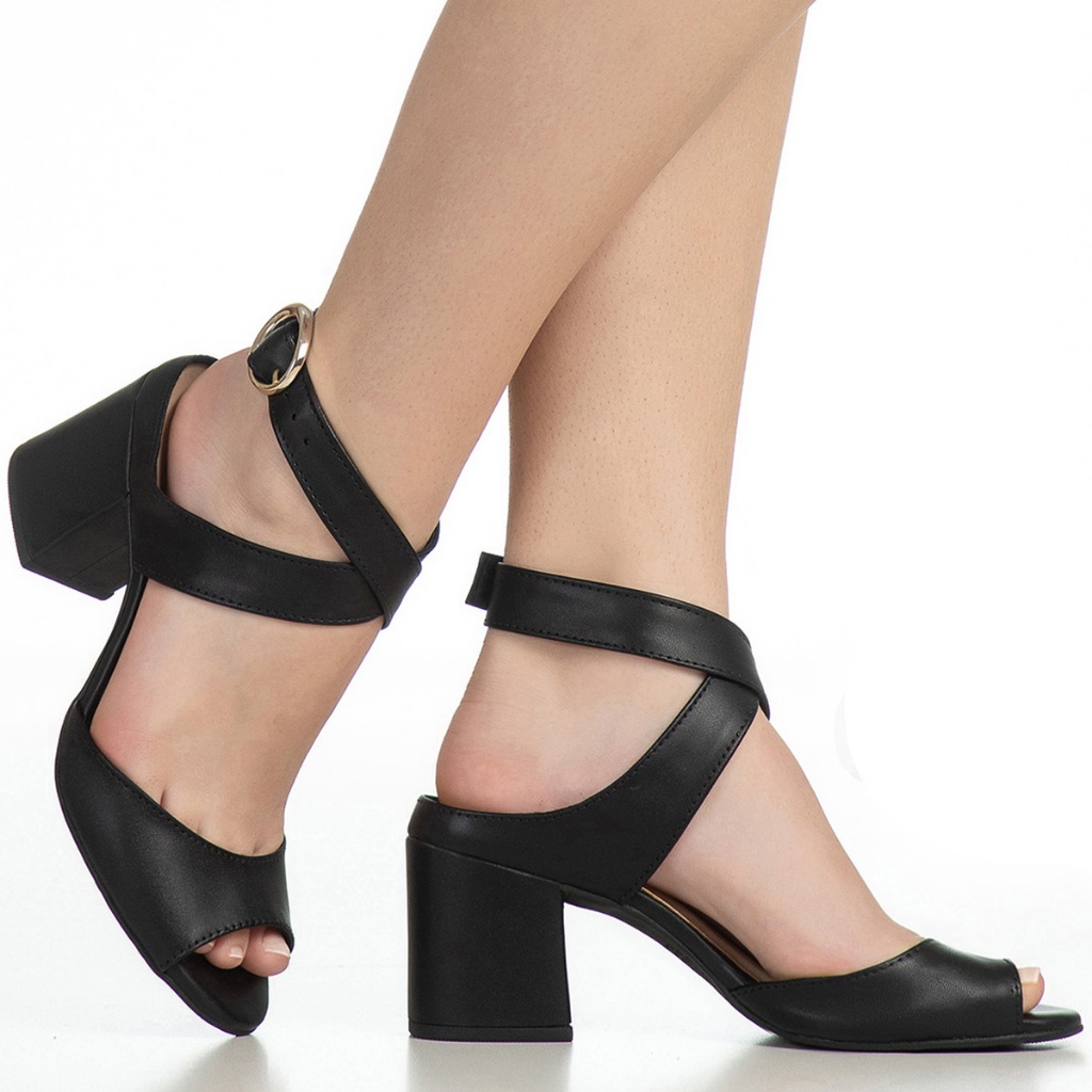 Sandália Feminina Salto Bloco Médio Tira Cruzada Fivela Lateral Bico Arredondado Elegante Casual