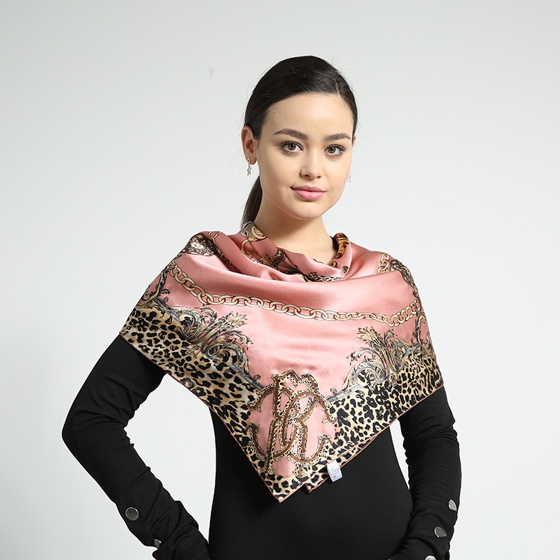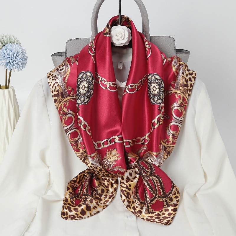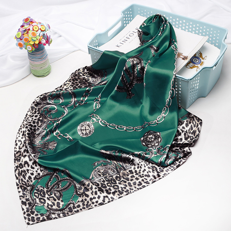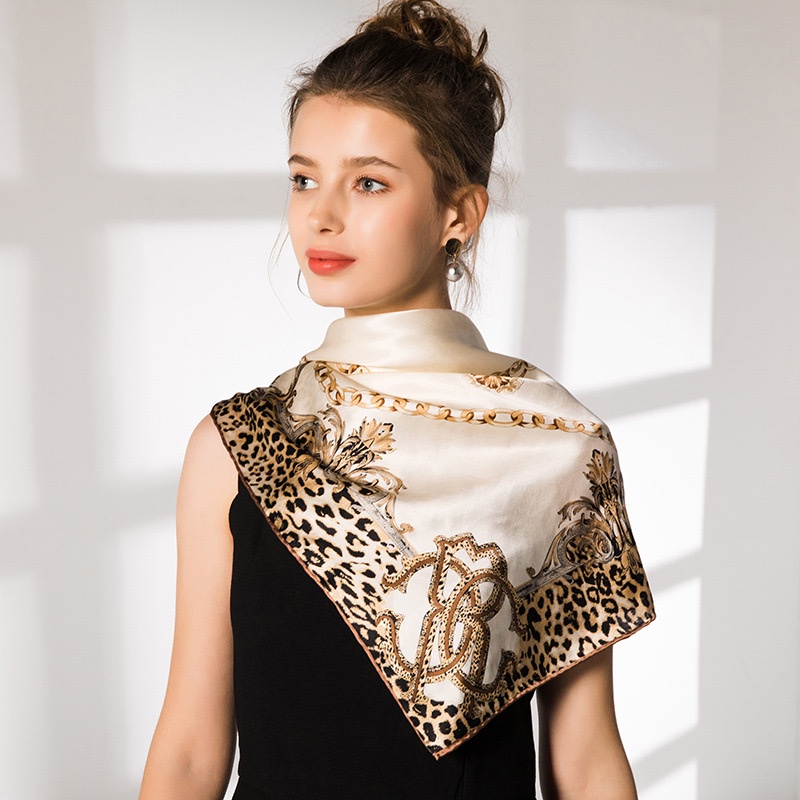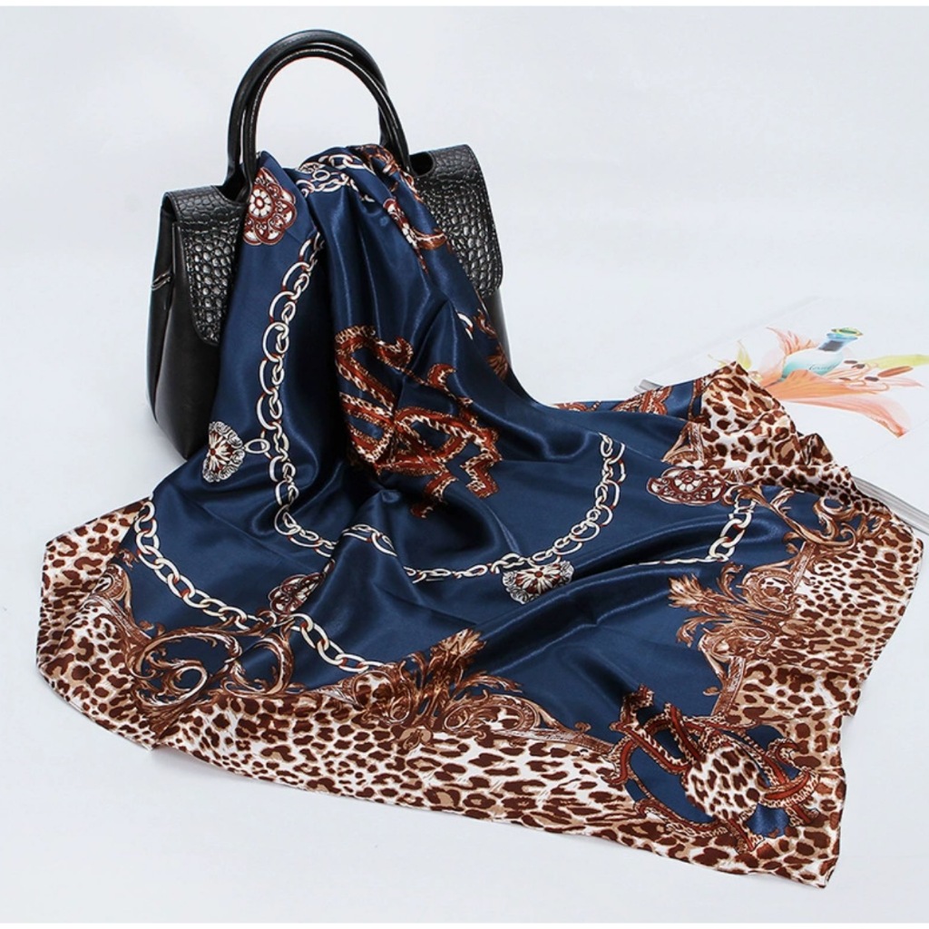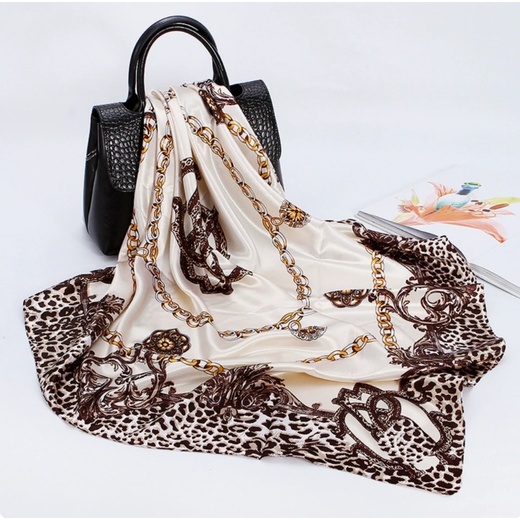 Lenço Seda Pescoço Echarpe Cetim Estampas Leopardo 90cmx90cm