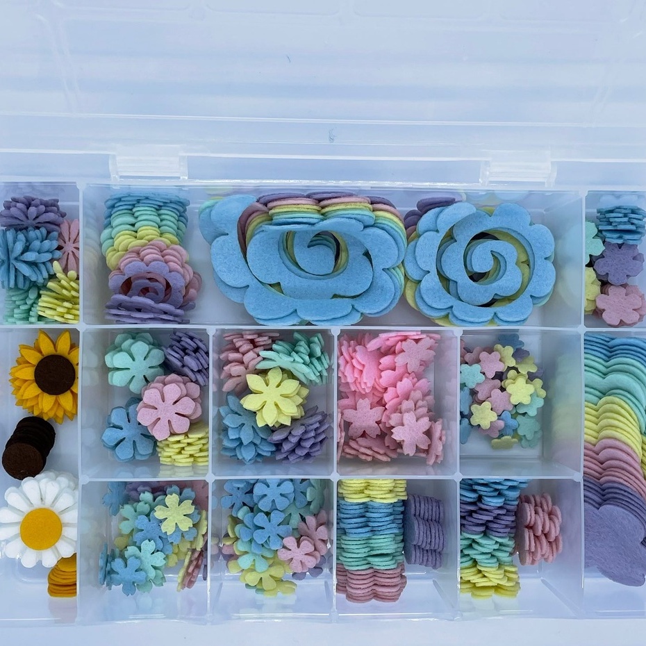 Caixa com recortes de flor em feltro para artesanato os