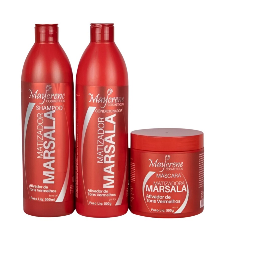 Kit Capilar Matizador Marsala 3 itens Shampoo + Mascara + Condicionador Maycrene Cosméticos