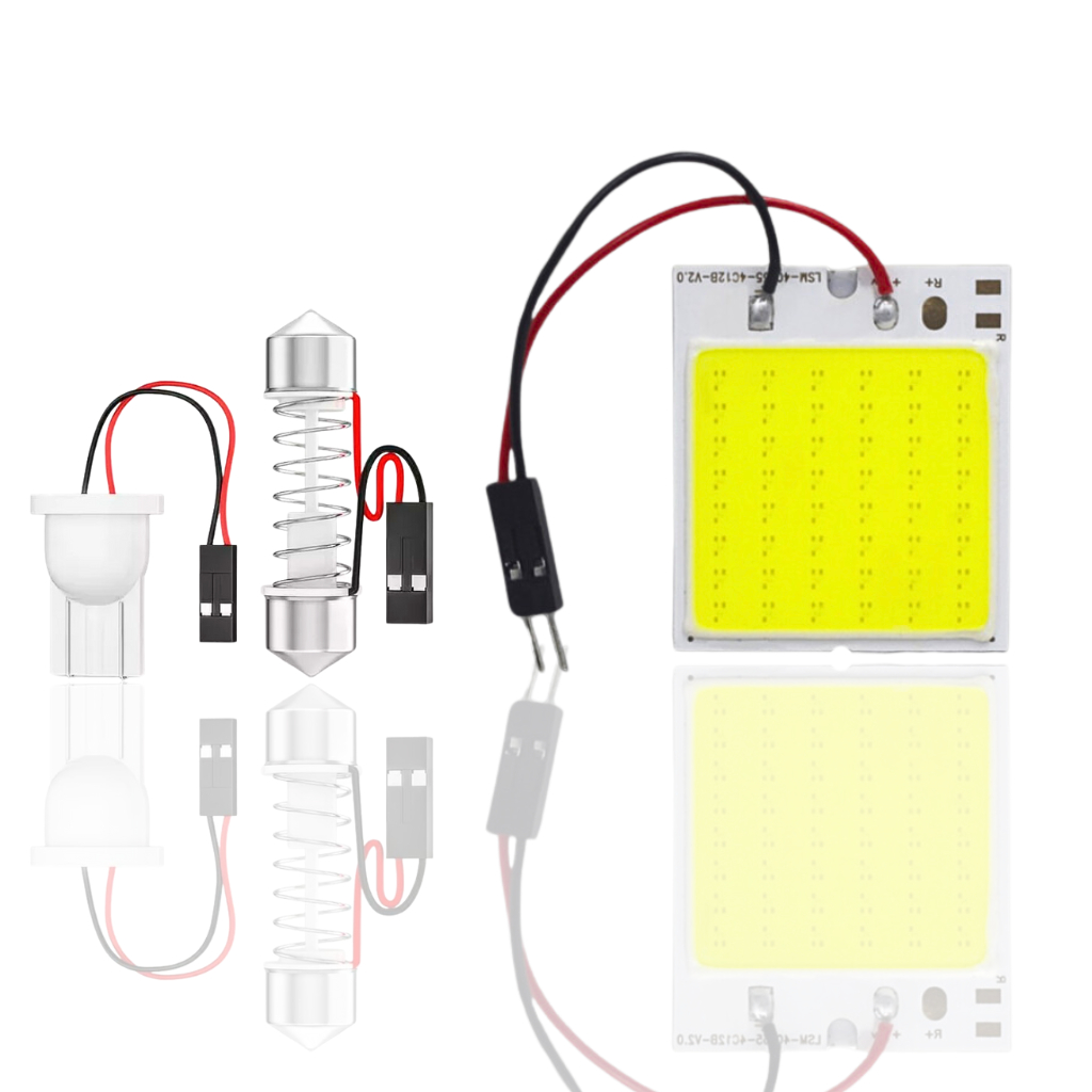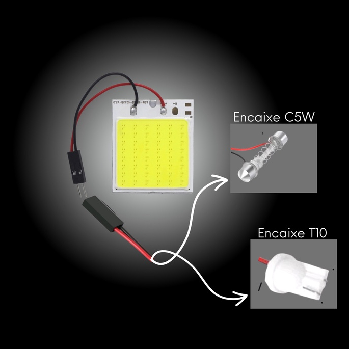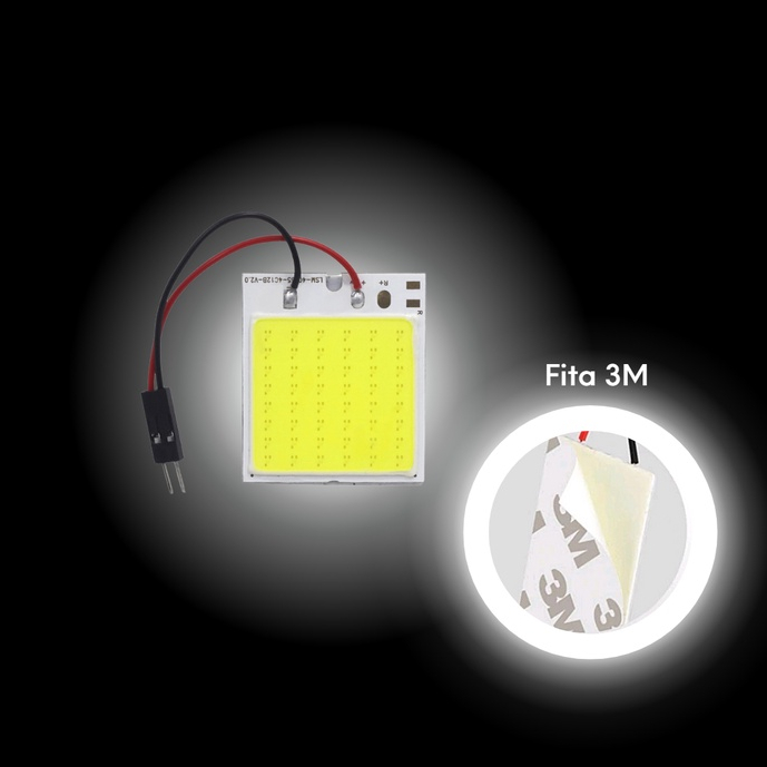 Kit Placa 48 Leds Cob T10 Torpedo 12v 10w Luz Interna teto leitura fita dupla face painel interior carro caminhão mala