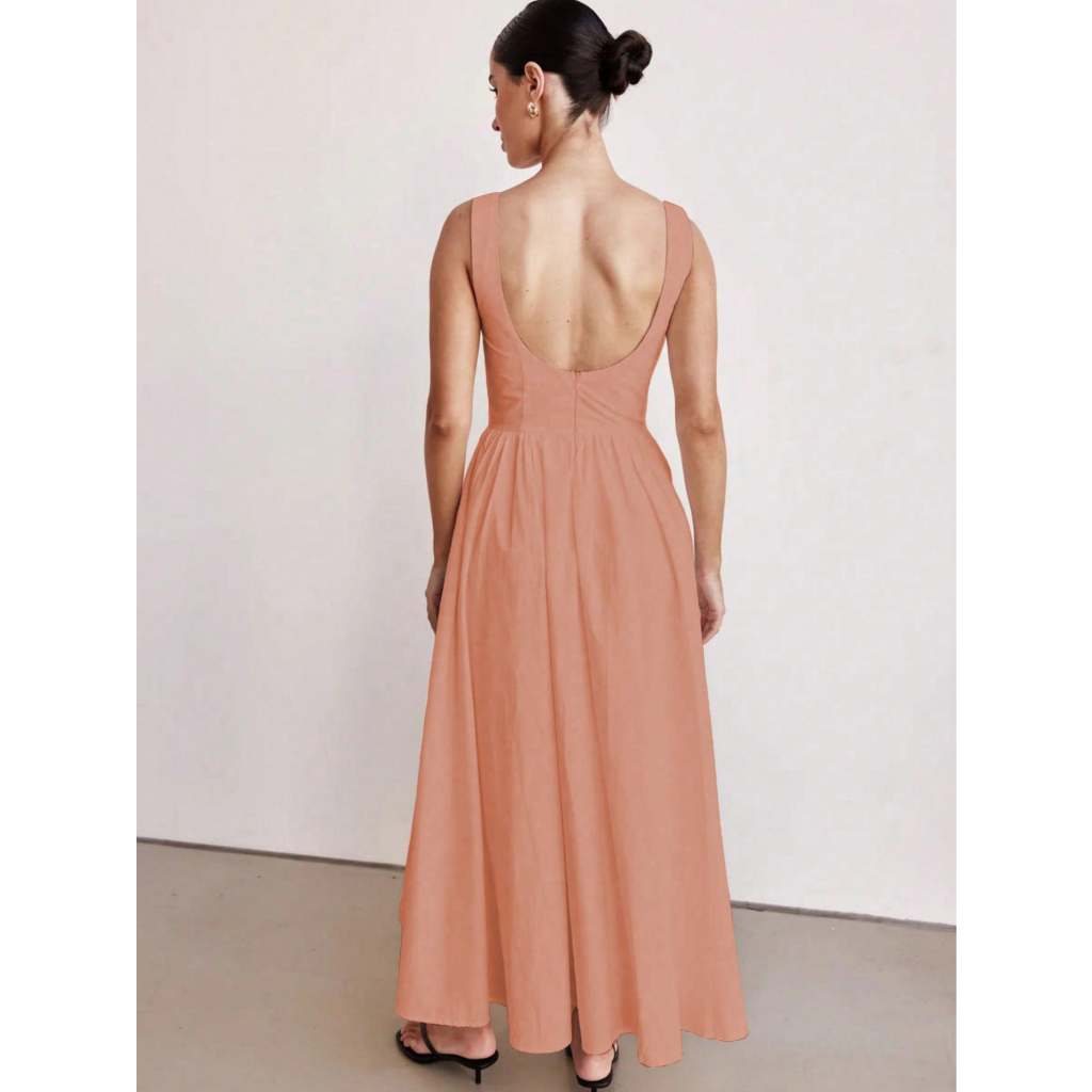 H978-Vestido feminino sem mangas com decote redondo, cintura alta, slim, costas nuas, zíper, sem bojo