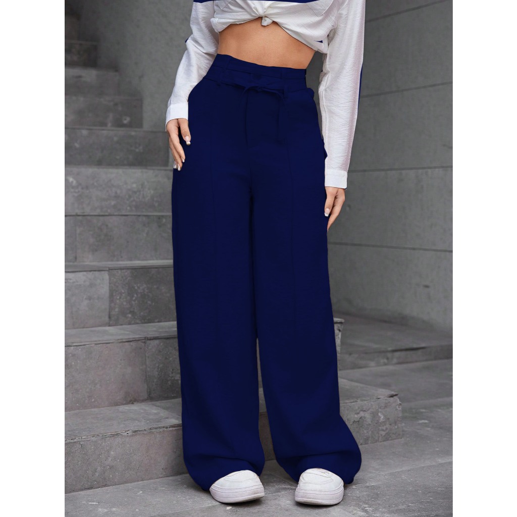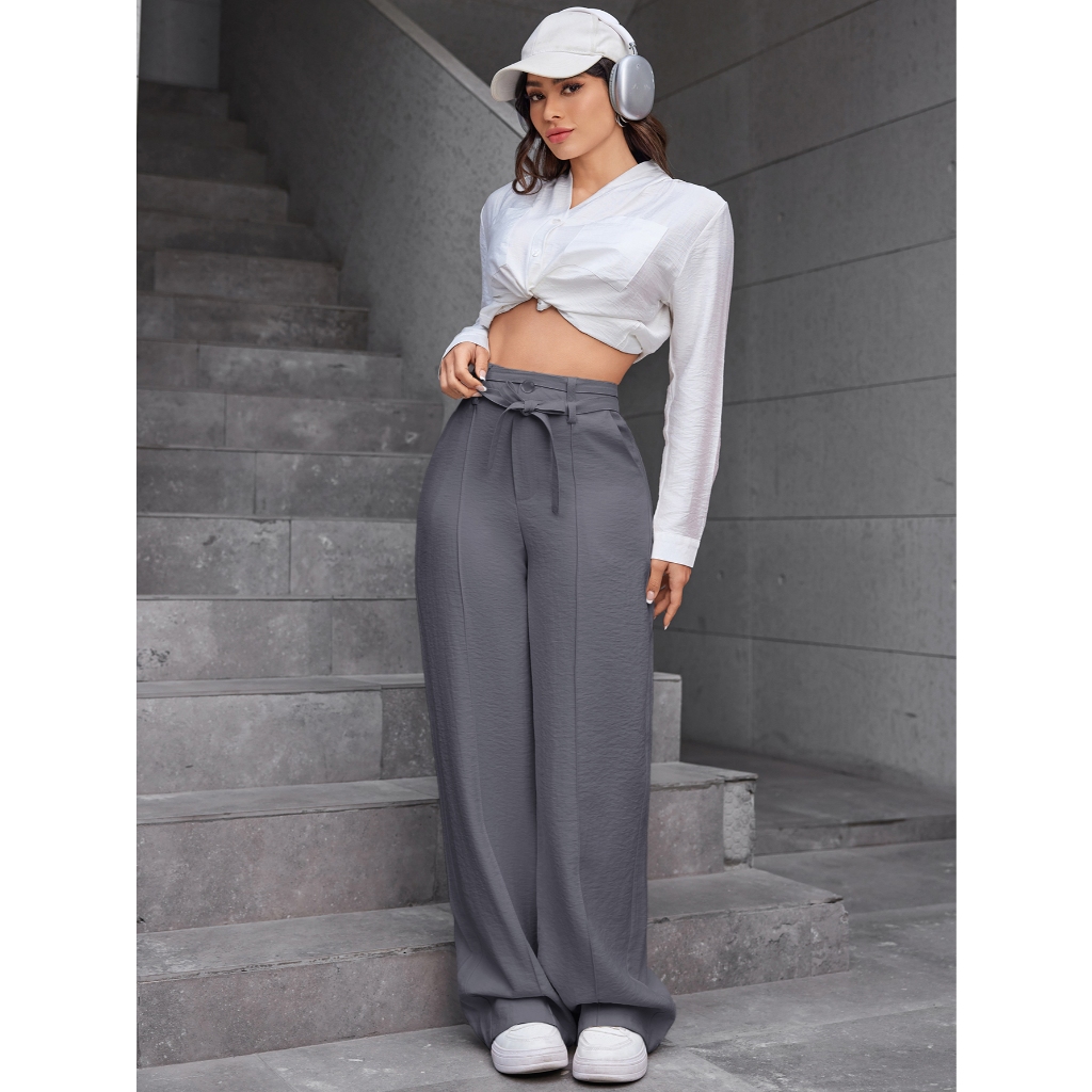 AS1414-Calças de terno femininas de perna larga, toque vertical, calças de perna reta, com cinto