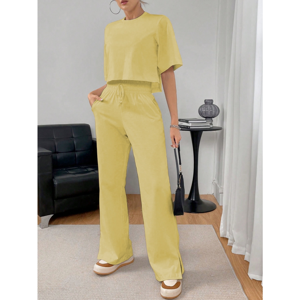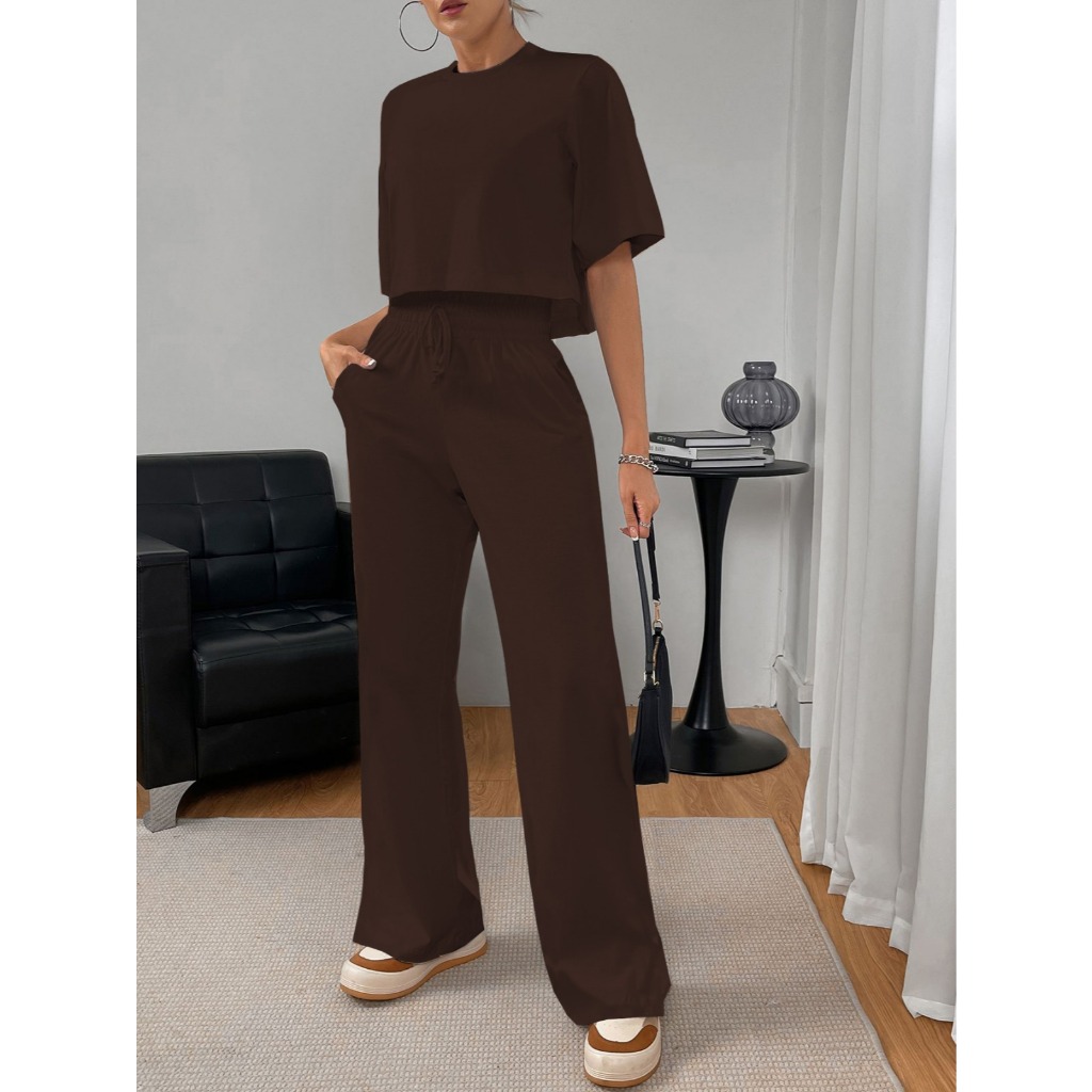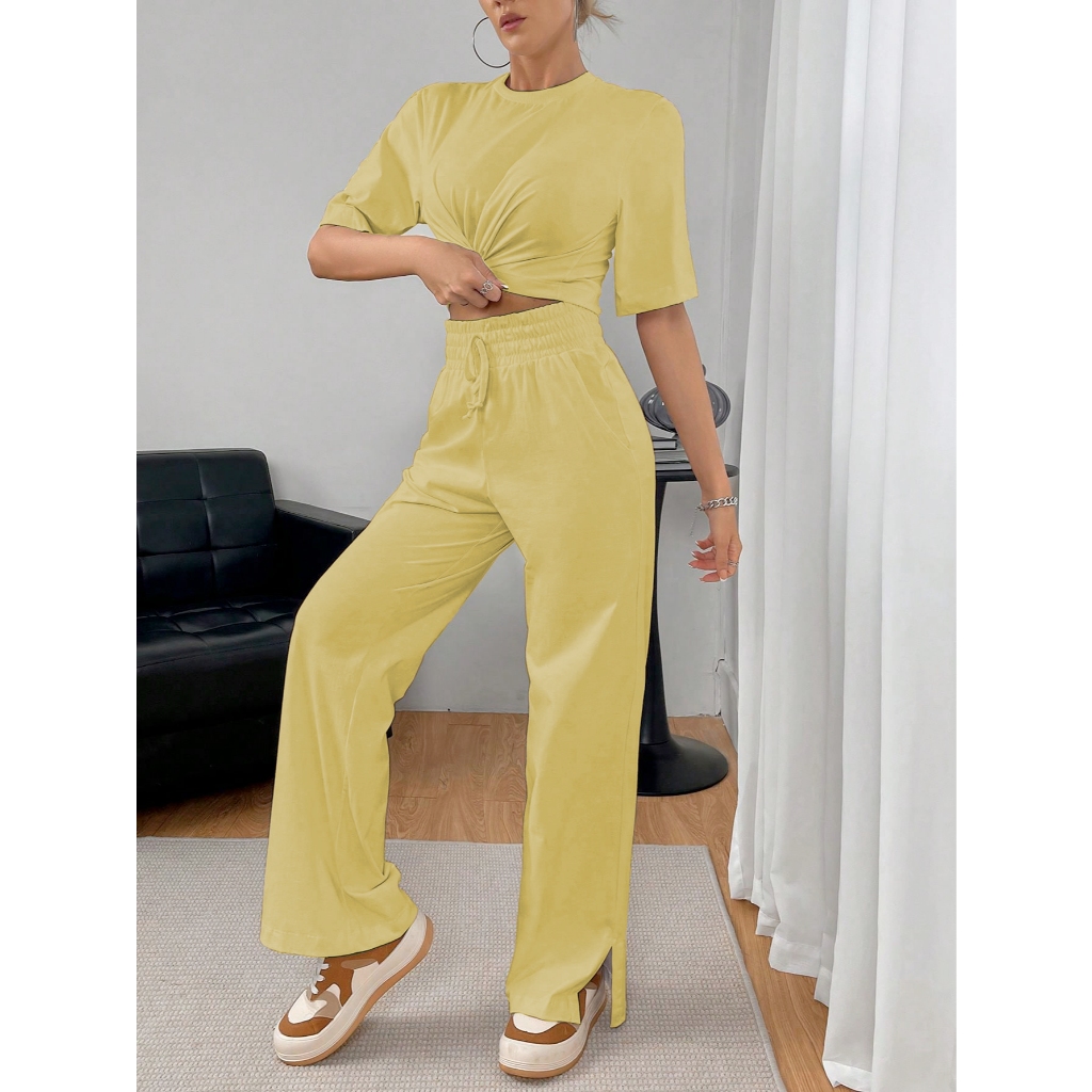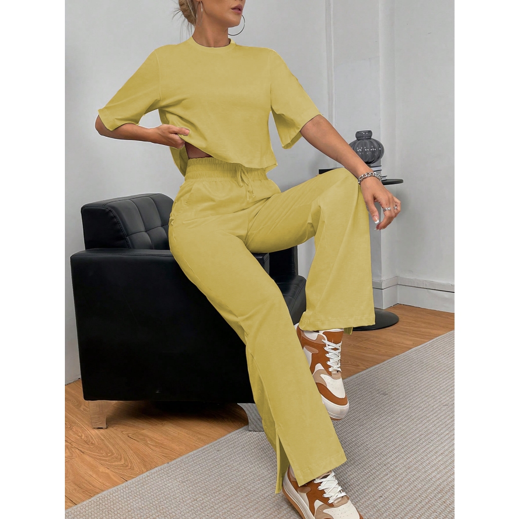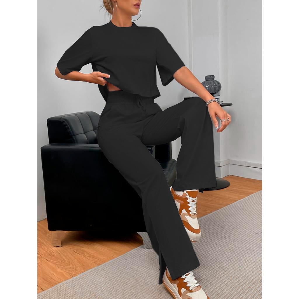 G0880 Conjunto Feminino De Frio, 2 Peças, Elegante, Malha Contraste, Sofisticada, Moderna