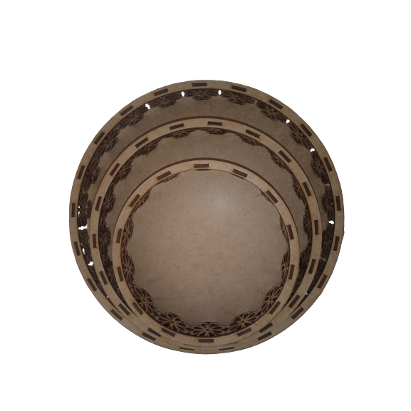 TRIO DE BANDEJA FLORAL EM MDF CRU.