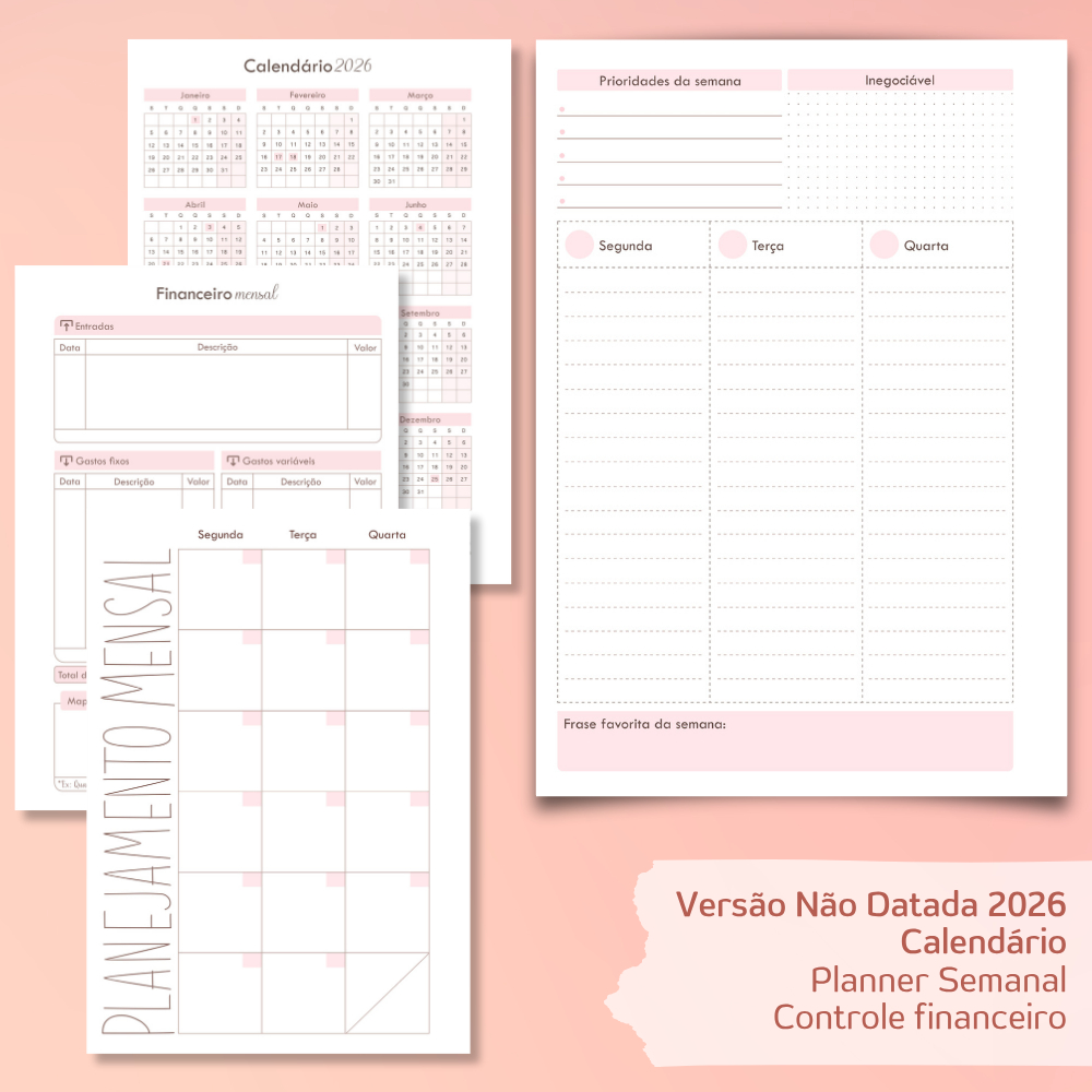Planner Semanal Permanente Pastel Strength- Erudittas Agenda não Datada e Datada