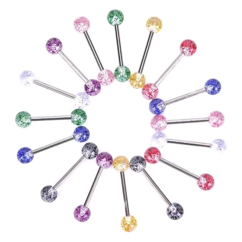 Kit 5 Piercings de Língua Glitter 19mm Masculino Feminino Aço Cirúrgico