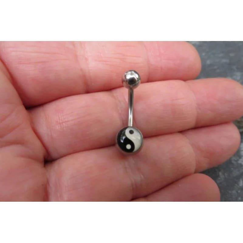 Piercing de Umbigo Yin Yang Bem Mal Positivo Negativo Aço Cirúrgico