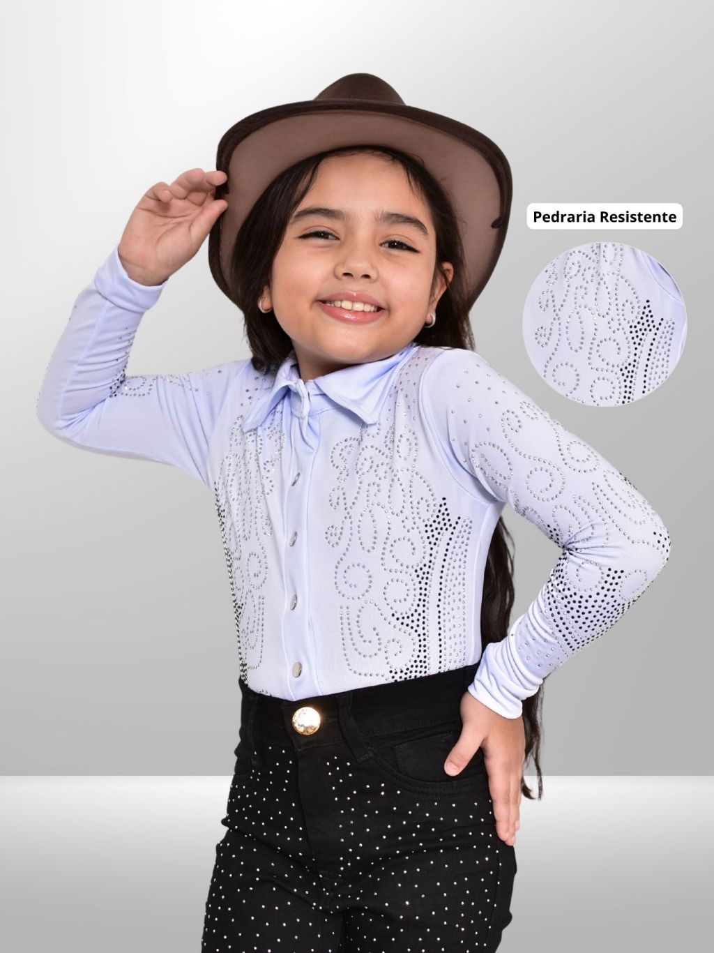 BODY COUNTRY INFANTIL COM PEDRARIA MANGA LONGA BOIADEIRA