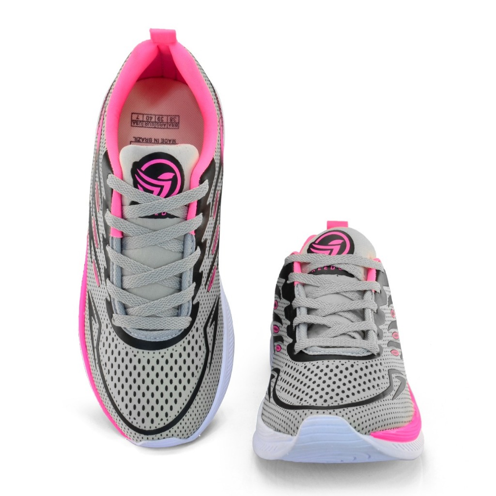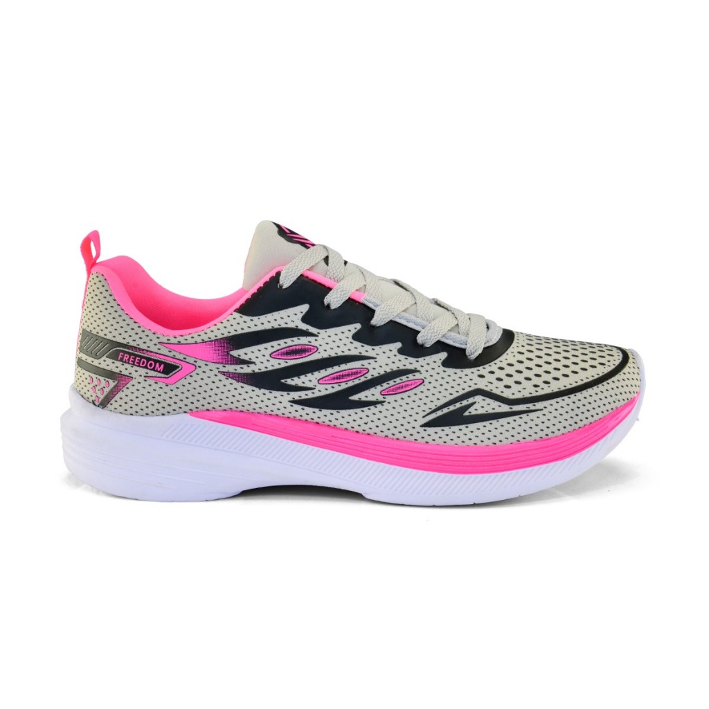 Tenis Feminino Escolar Academia Original FREEDOM Corrida Caminhada Lançamento CINZA PINK