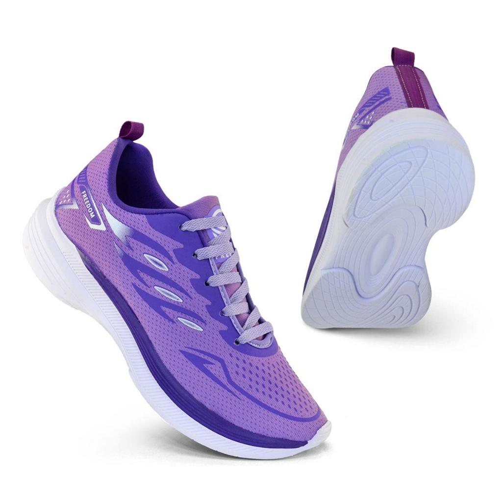 Tenis Feminino Escolar Academia Original FREEDOM Corrida Caminhada Lançamento LILAS VIOLETA