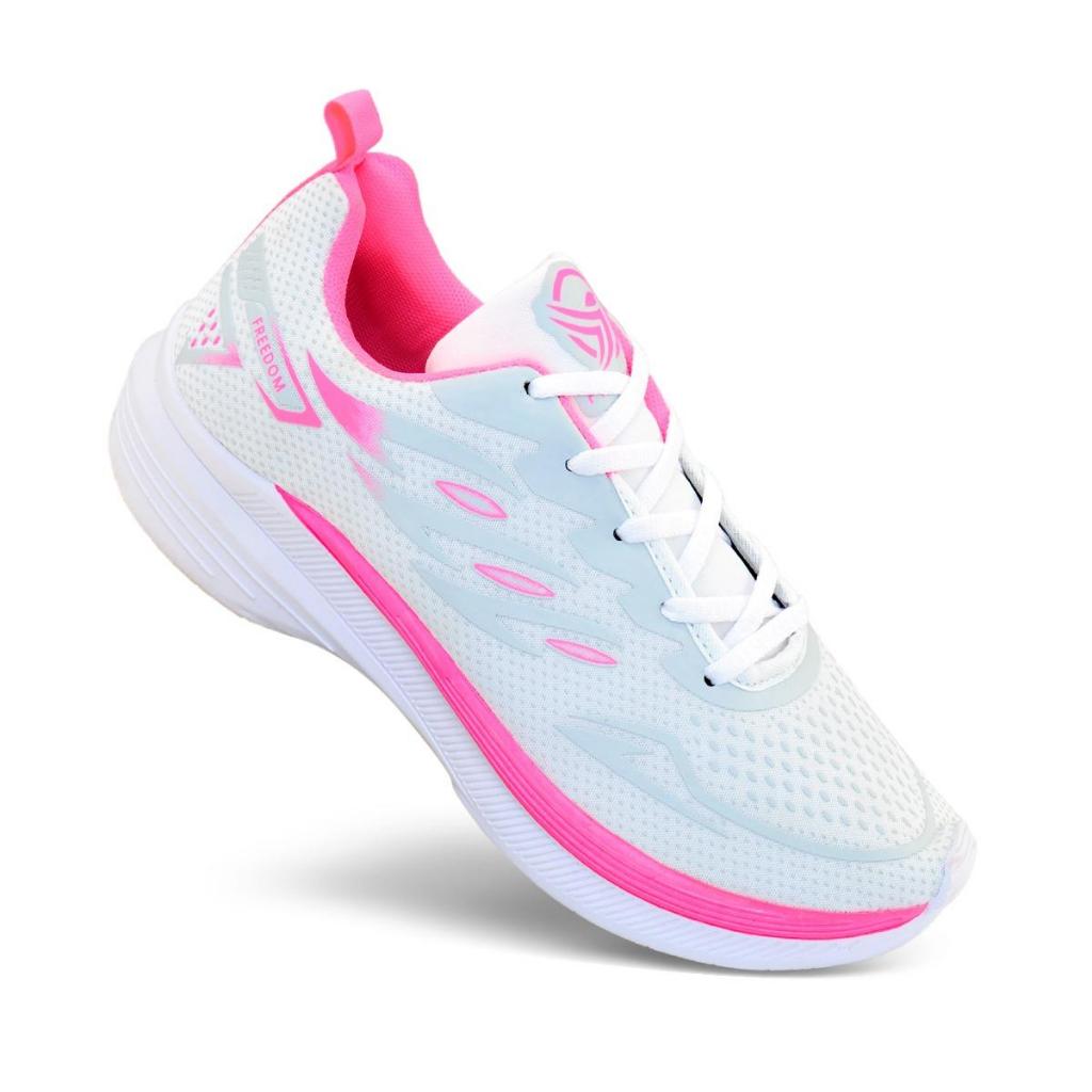 Tenis Feminino Escolar Academia Original FREEDOM Corrida Caminhada Lançamento Feminino BRANCO PINK