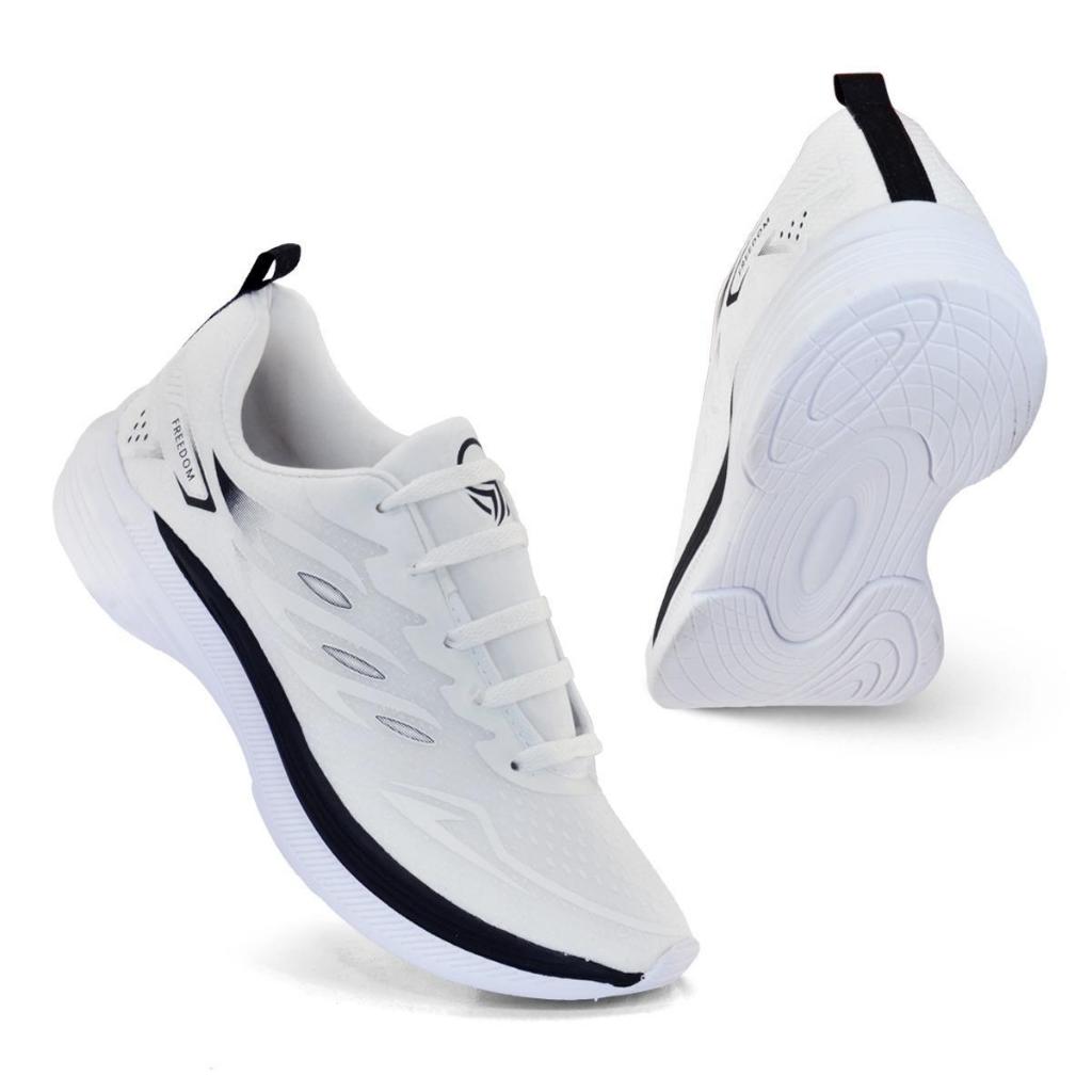 Tenis Masculino Escolar Academia Original FREEDOM Corrida Caminhada Lançamento BRANCO PRETO