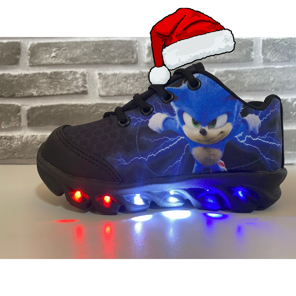 Tenis Infantil LED SONIC de Menino Com Led Luzinha Personagem tenis com luzes coloridas