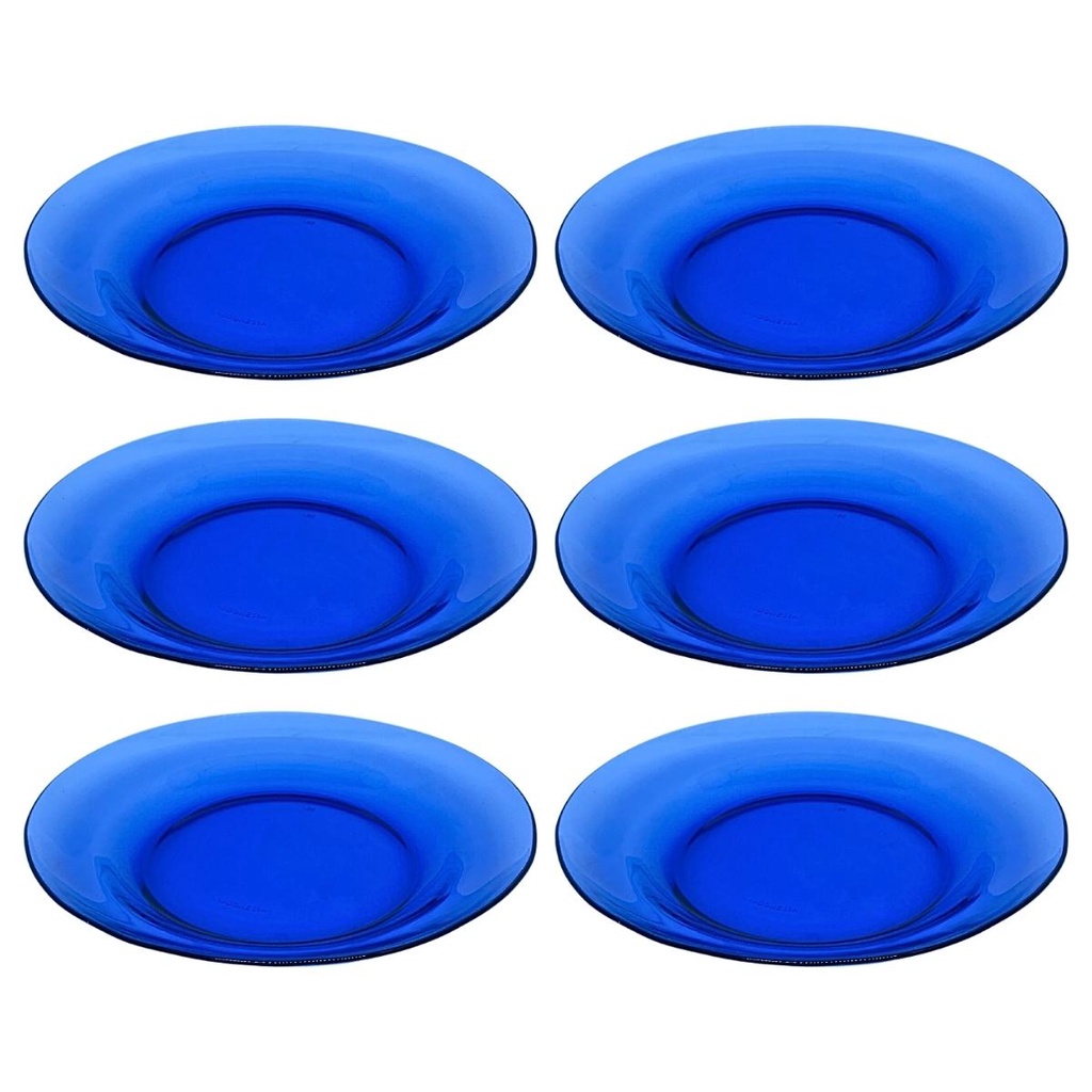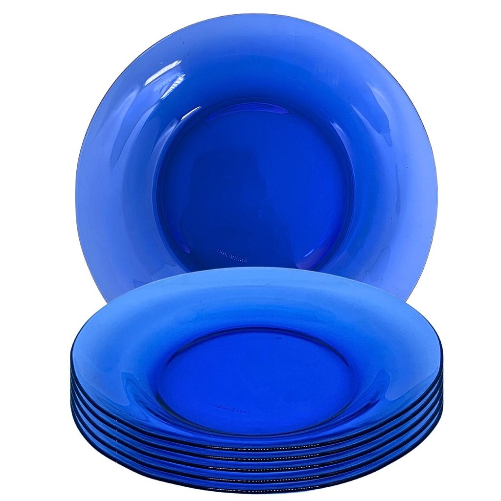 JOGO 12 PRATOS FUNDO VIDRO AZUL LISO KIT
