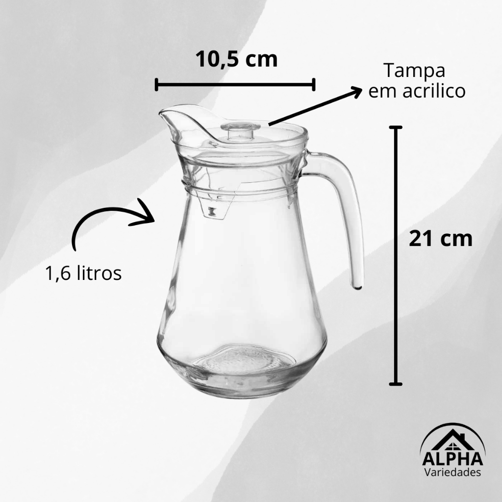 JARRA DE VIDRO COM TAMPA 1.6 LITROS PARA SUCO AGUA