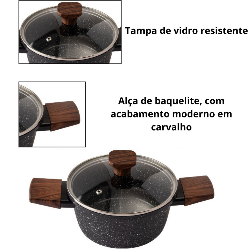 PANELA CAÇAROLA DE INDUÇÃO E GÁS ANTIADERENTE C/ TAMPA 18, 20 E 24 CM