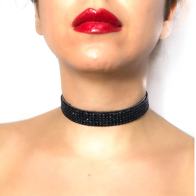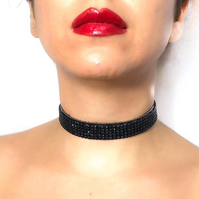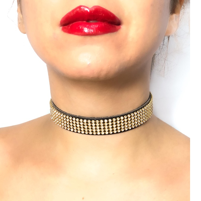 Choker STRASS GLAMOUR Gargantilha em couro Vegano
