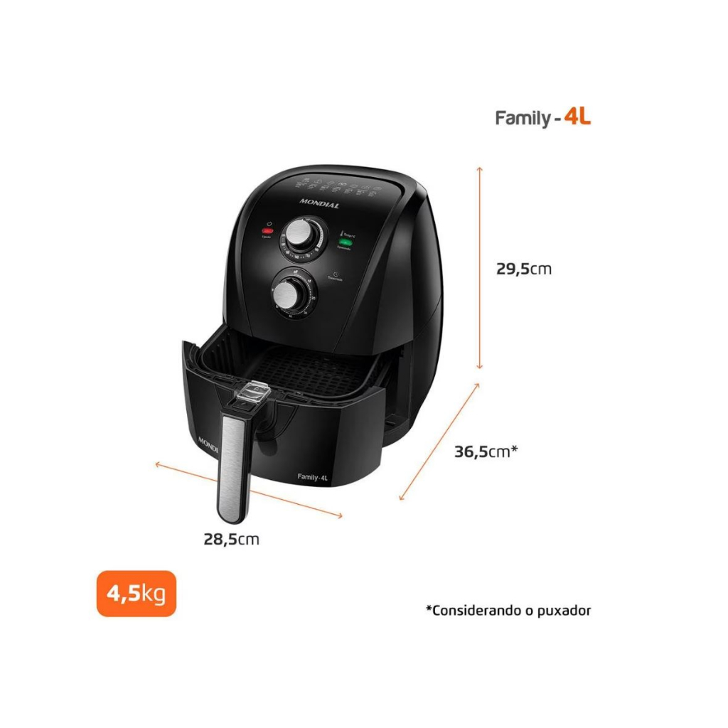 Fritadeira Elétrica Sem Óleo Air Fryer Mondial Family AFN40FB 4 L – Preta