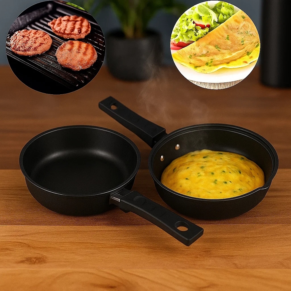 Frigideira Dupla Antiaderente Não Gruda 14cm Hamburgueira Omelete Ovo Hambúrguer Crepe Tapioca