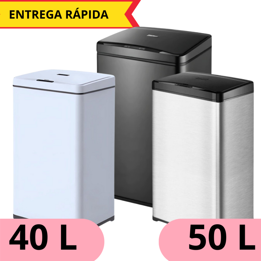 Lixeira Automática 40 ou 50 Litros Sensor Movimento Aço Inox Moderna Prática Cozinha Escritório