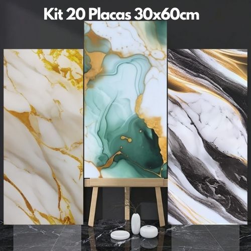 Kit 20 Painel Placa Vinílico Adesivo Autocolante Mármore Madeira 30 x 60cm = 3,6m²